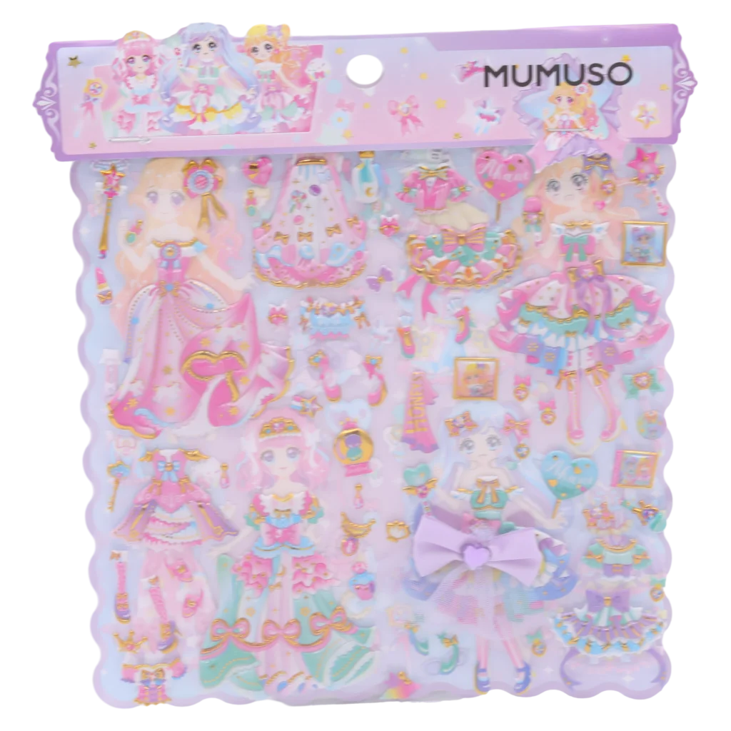 Die Sticker zeigen märchenhafte Prinzessinnen und Accessoires in zarten Pastellfarben wie Rosa, Lila und Blau. Das detailreiche Design und die doppelte Lage sorgen für besondere Tiefe und attraktive Optik auf Papier und Geschenkverpackungen.