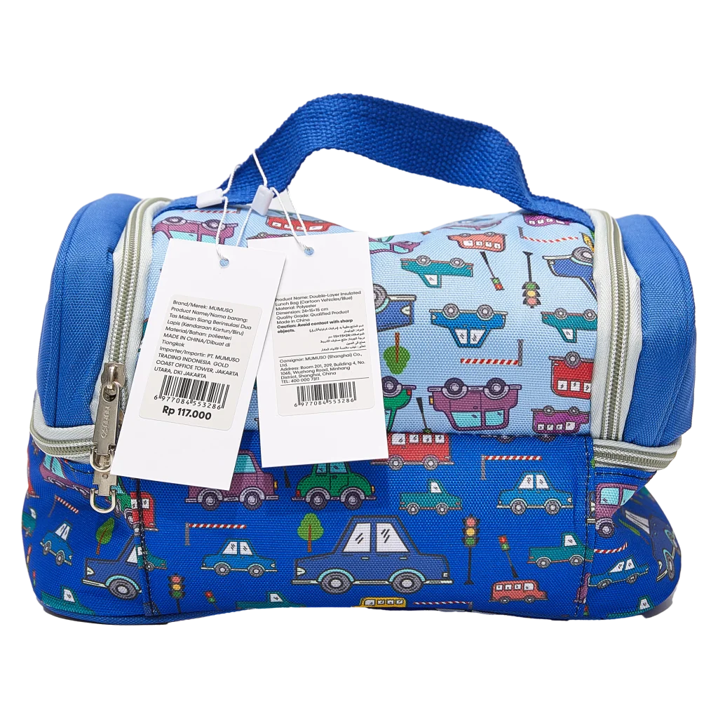 - Doppellagige Polyester-Lunch-Bag mit Auto-Design, isoliert (Blau)