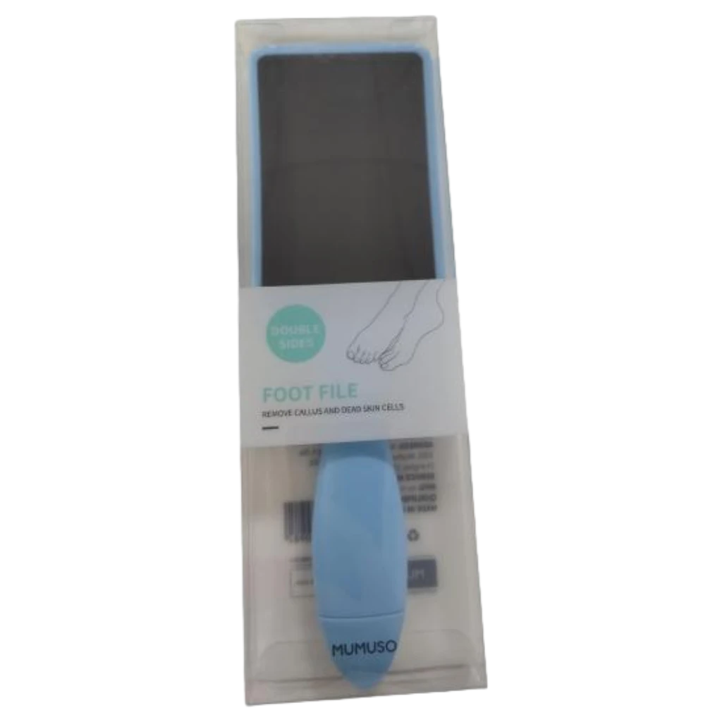 Die Feile besteht aus stabilem Polystyrol mit einer langlebigen Schleifpapieroberfläche. Die ergonomische Form und die zartblaue Farbe (Blau) sorgen für eine komfortable Anwendung und einen frischen Look im Badezimmer.