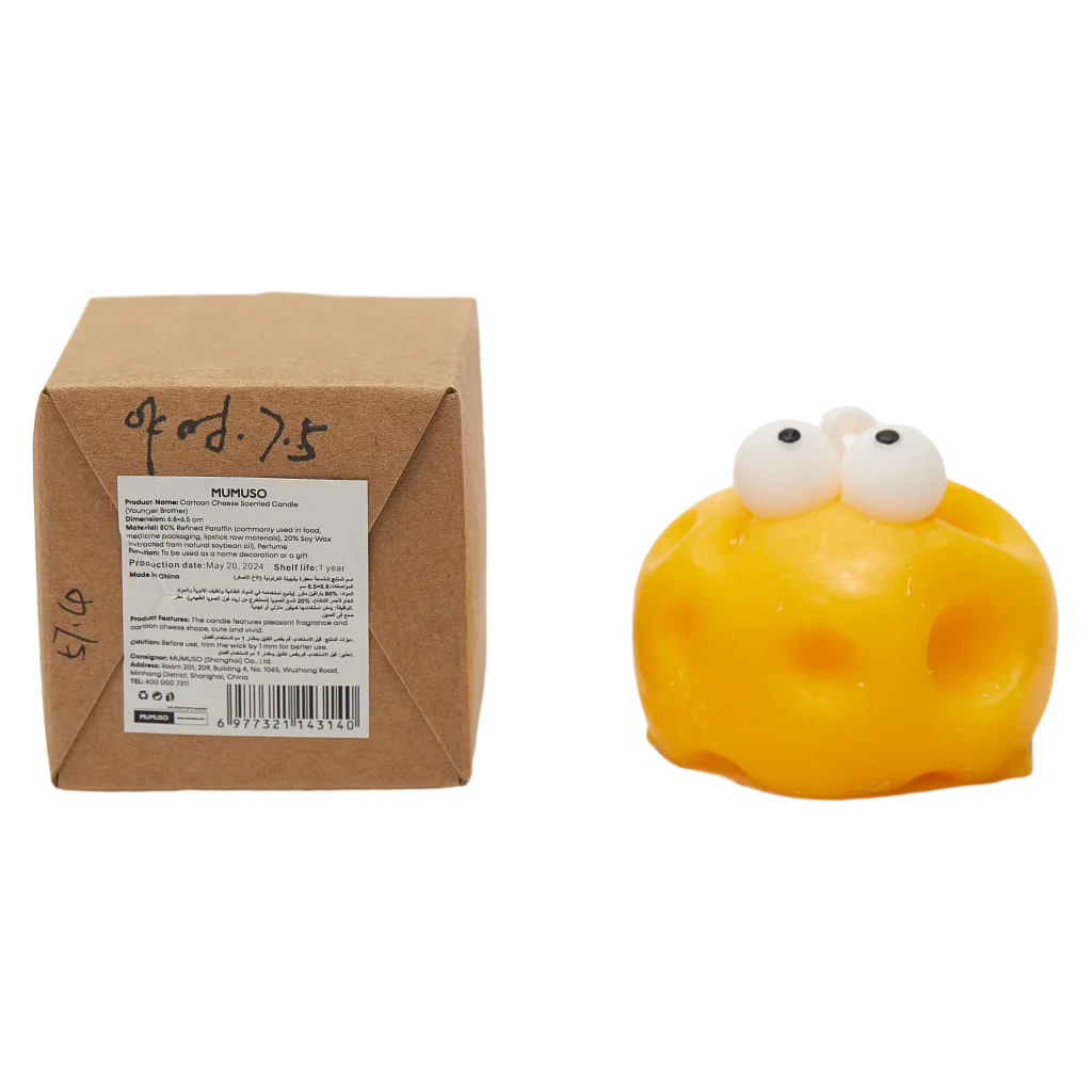 Die Kerze besticht durch ihr detailreiches Käse-Design in lebhaftem Gelb und auffälligen Verzierungen. Die witzigen Augen machen sie zu einem echten Hingucker in Wohnzimmer, Kinderzimmer oder Büro.