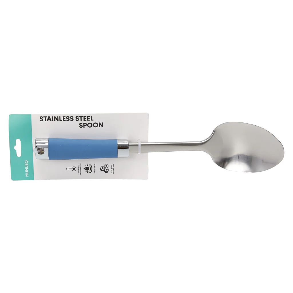 - Edelstahl-Löffel mit ergonomischem Griff für die Küche (Blau)