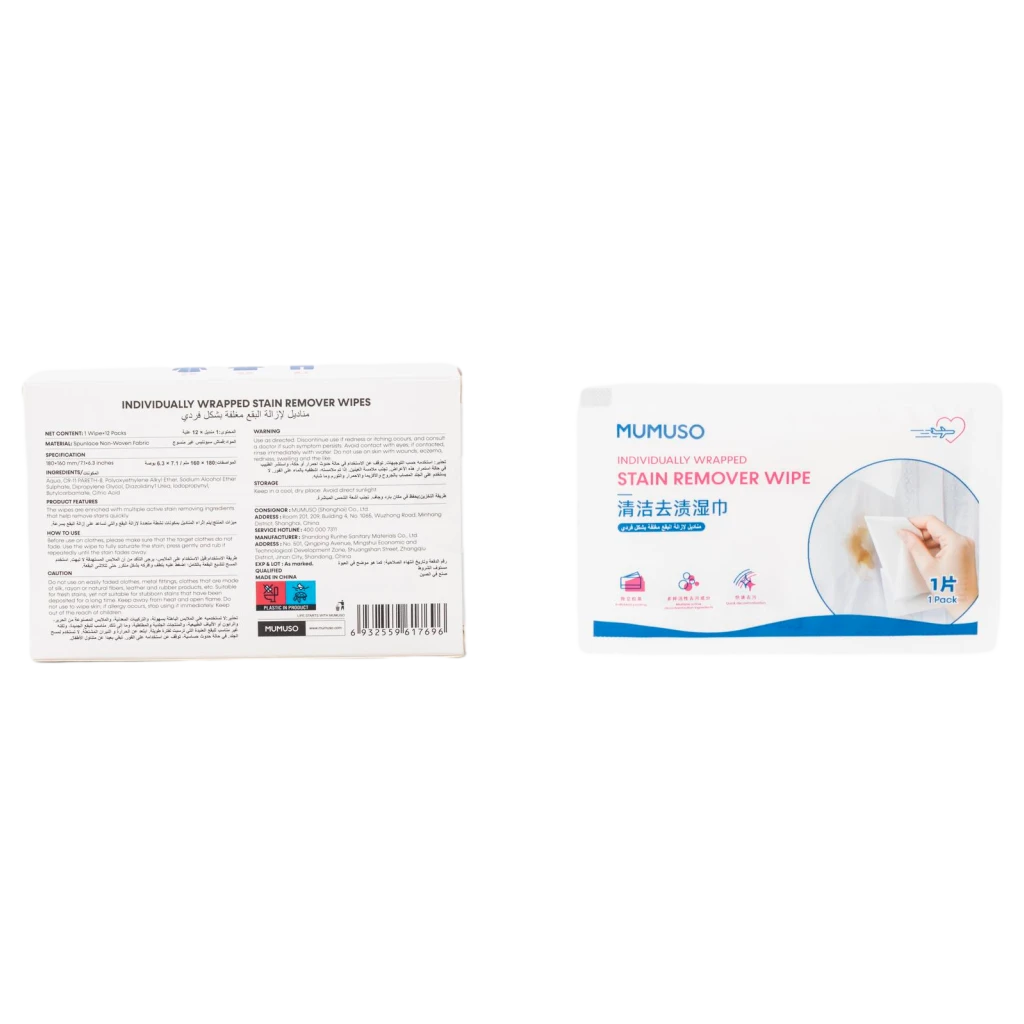 - Einzeln verpacktes Fleckenentferner-Tuch für Textilien, Reinigung unterwegs (Weiß)
