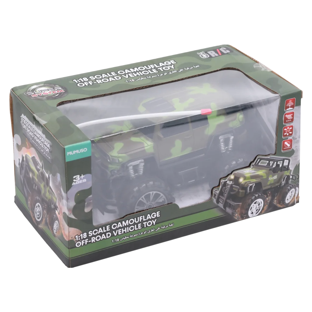 - Ferngesteuertes Offroad-Modellauto, 1:18 Maßstab aus ABS mit Camouflage-Design (Grün/Braun)