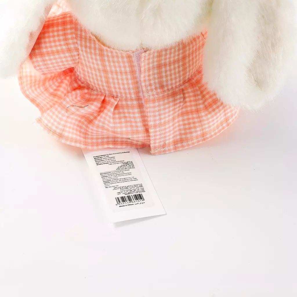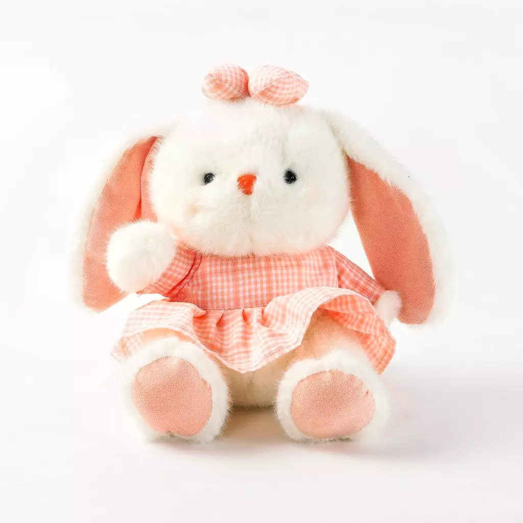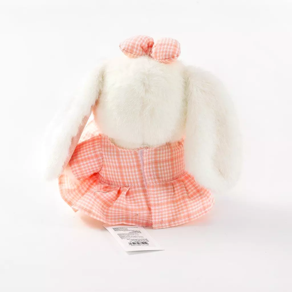 Gefertigt aus weichem, hochwertigem Plüsch, ist dieses Kaninchen besonders kuschelig und angenehm zu berühren. Das niedliche Design mit dem karierten Kleidchen und der Schleife macht es zu einem echten Hingucker.