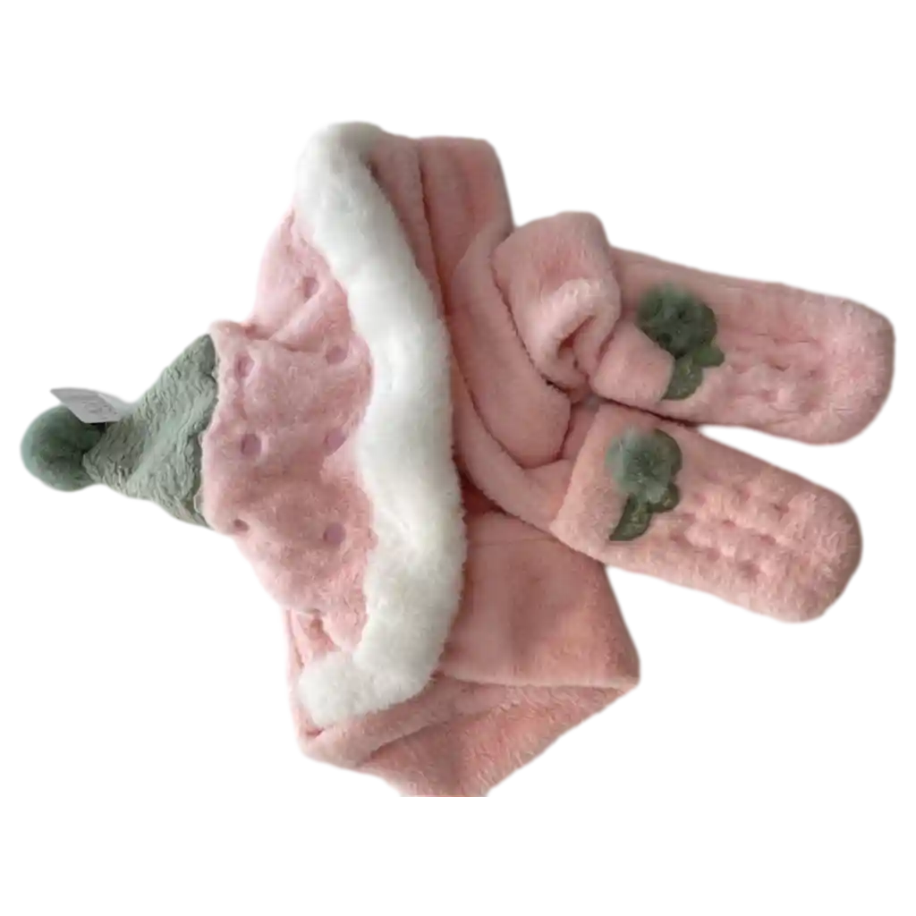 - Flauschige Mütze mit Schal aus 100% Polyester mit Erdbeer-Design (Rosa/Grün)