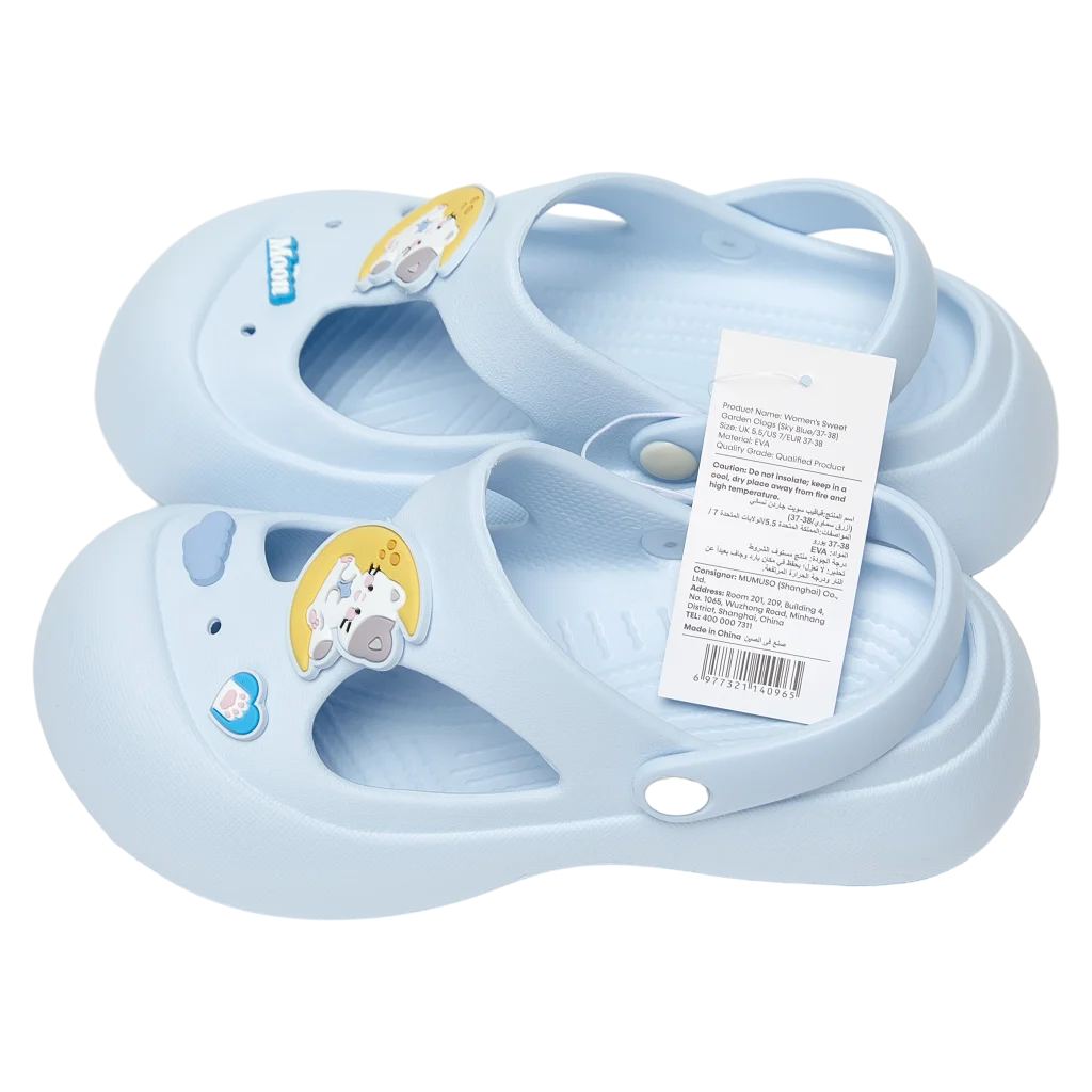 Gartenclogs Damen mit Katzen-Design (Himmelblau, Größe 37-38)