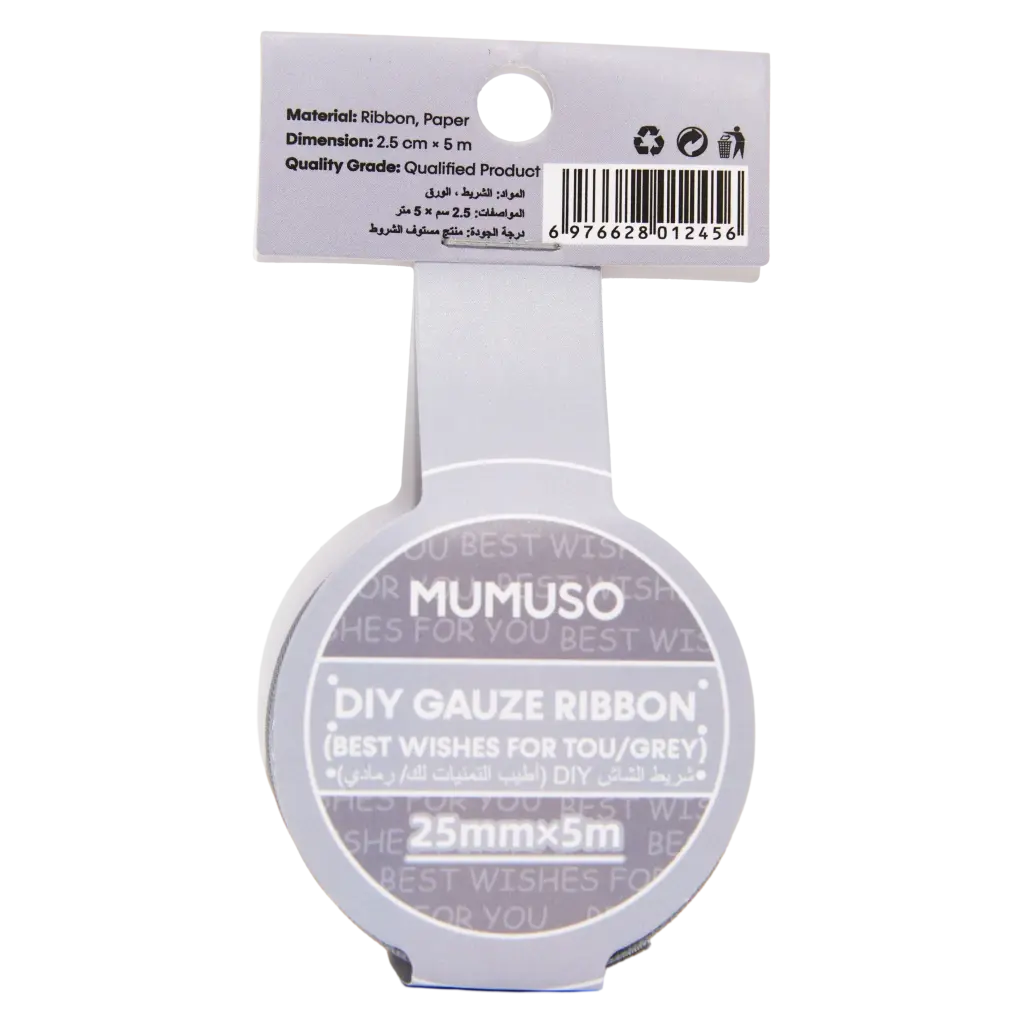 Das DIY-Gaze-Geschenkband in Grau eignet sich ideal zum stilvollen Verpacken von Geschenken und Dekorieren. Es ist vielseitig einsetzbar und überzeugt durch ein dezentes Print-Design. Perfekt für Bastelfans und kreative Geschenkideen.
