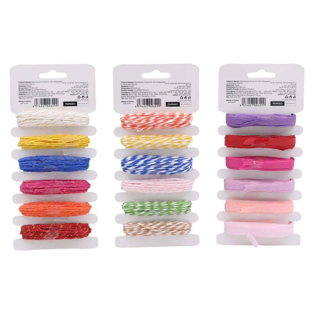 Dekoratives Geschenkband in sechs verschiedenen Farben eignet sich ideal für kreative Geschenkverpackungen und DIY-Projekte. Das Garn ist vielseitig verwendbar und bringt Farbe sowie einen individuellen Akzent in die Geschenkgestaltung. Keywords: Geschenkband, Dekoband.