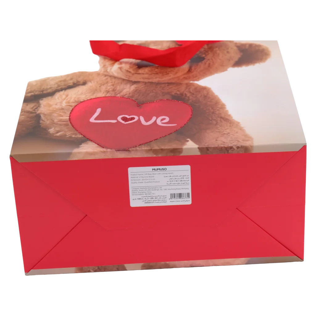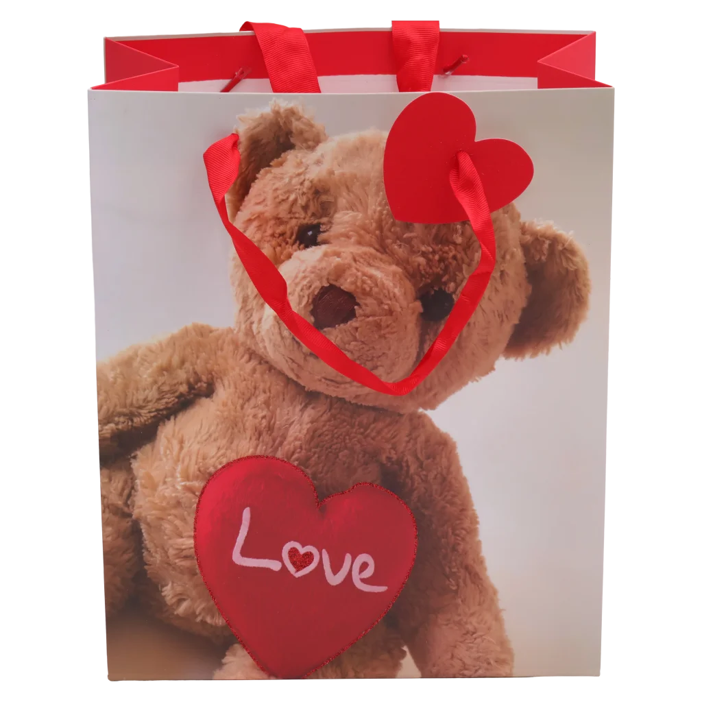 Geschenktasche mit Bär-Design und rotem Herz eignet sich ideal zum stilvollen Verpacken von Präsenten für besondere Anlässe. Perfekt für Geburtstage, Valentinstag oder als kleine Aufmerksamkeit. Robuste Ausführung sorgt für sicheren Transport. Keywords: Geschenktasche, Geschenkverpackung.