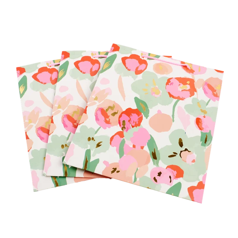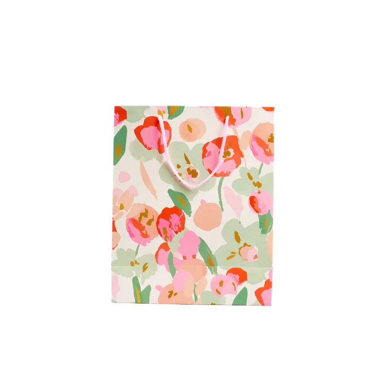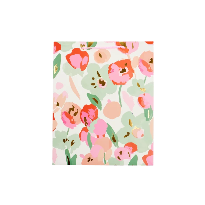 - Geschenktüte Papier mittel mit Blumen-Design (Rosa/Grün)