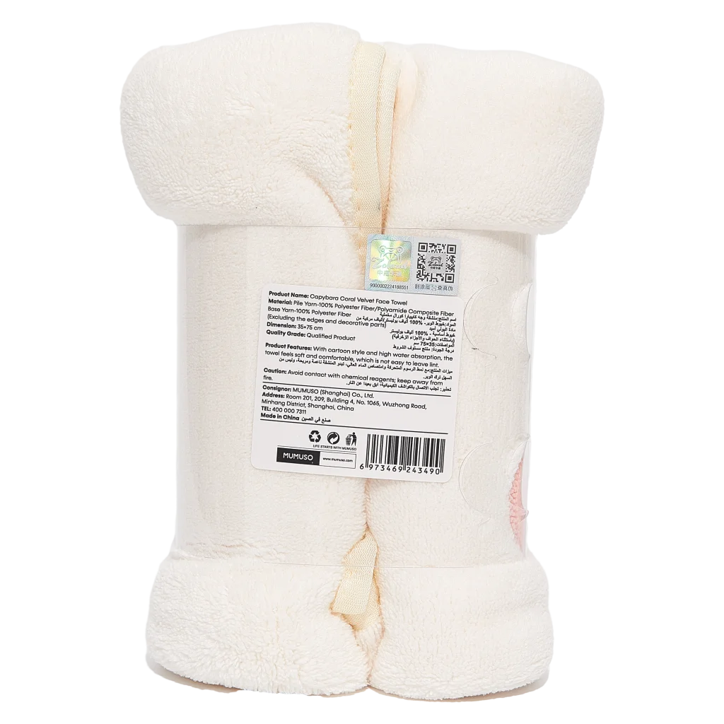 - Gesichtshandtuch aus Coral Fleece mit Capybara-Design (Weiß/Rosa/Beige)