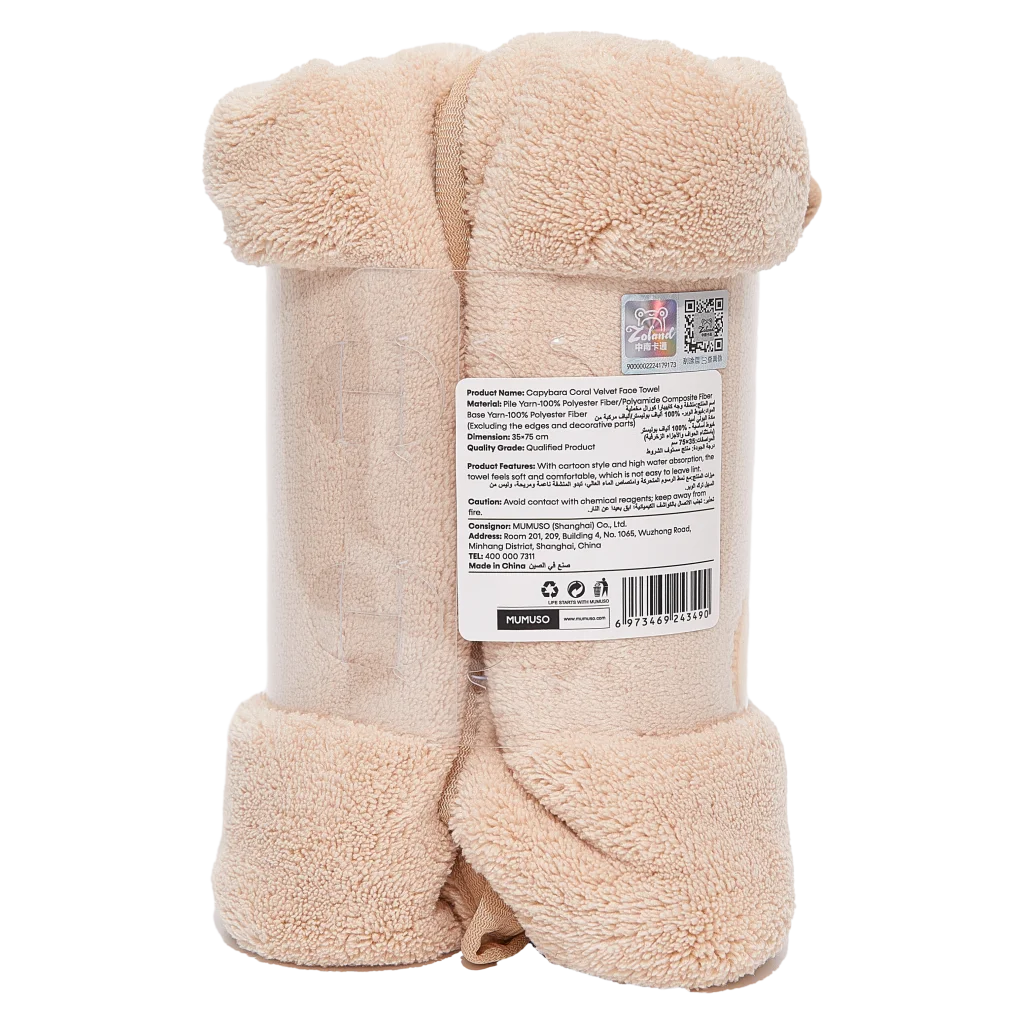 Weiches Gesichtshandtuch aus Coral Fleece mit Capybara-Design sorgt für sanfte Reinigung und ist ideal für empfindliche Haut geeignet. Hergestellt aus Polyester/Polyamid-Verbundfaser ist es pflegeleicht und komfortabel im täglichen Gebrauch. Geeignet für Kinder und Erwachsene.