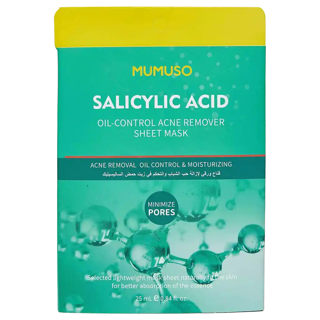 Die Sheet Mask mit Salicylsäure reguliert die Talgproduktion und hilft, Unreinheiten gezielt zu mildern. Ideal für ölige oder zu Akne neigende Haut geeignet. Minimiert Poren und spendet Feuchtigkeit für ein reines Hautbild.