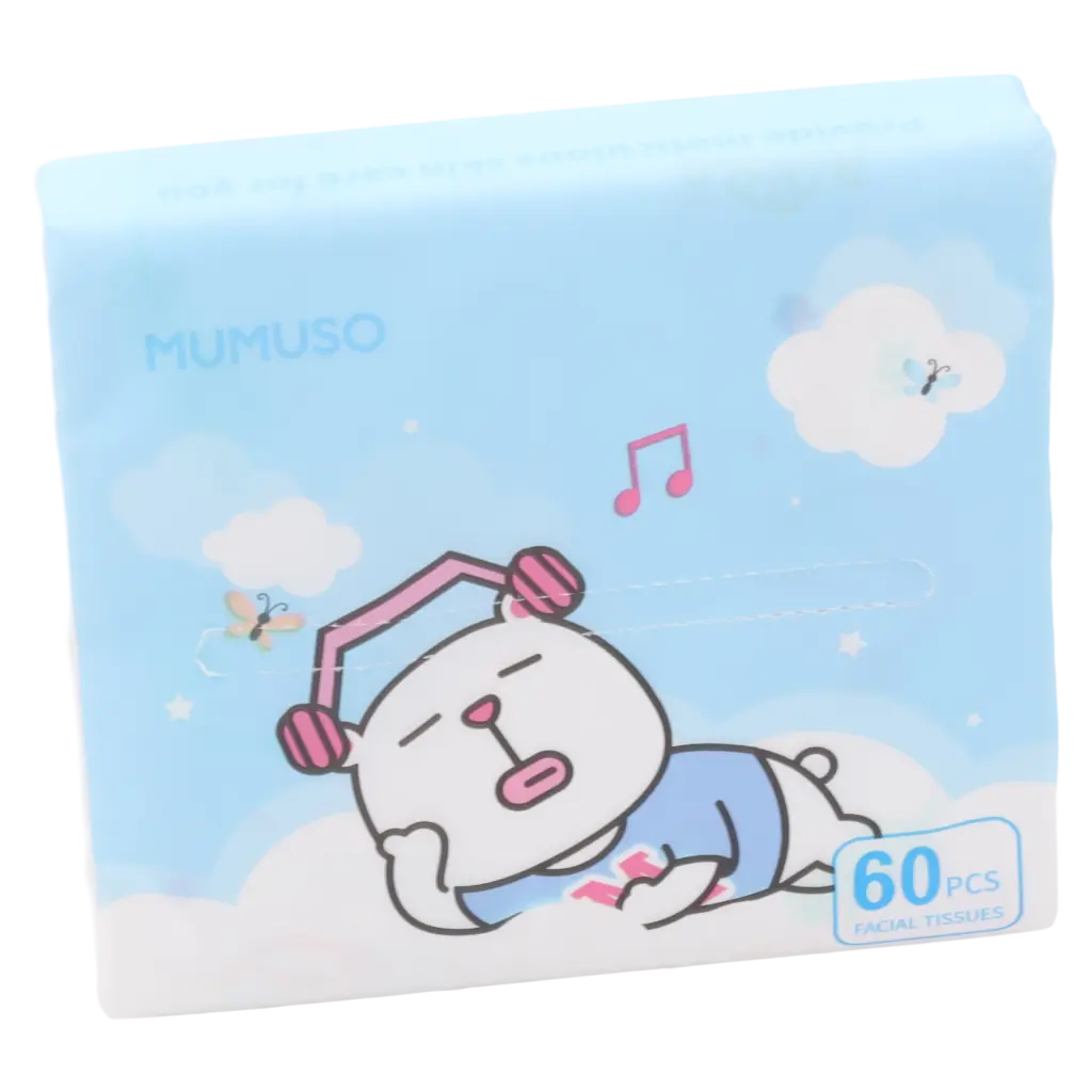 Gesichtstücher aus Holzschliff mit Bärchen-Design, 60 Stück (Blau)