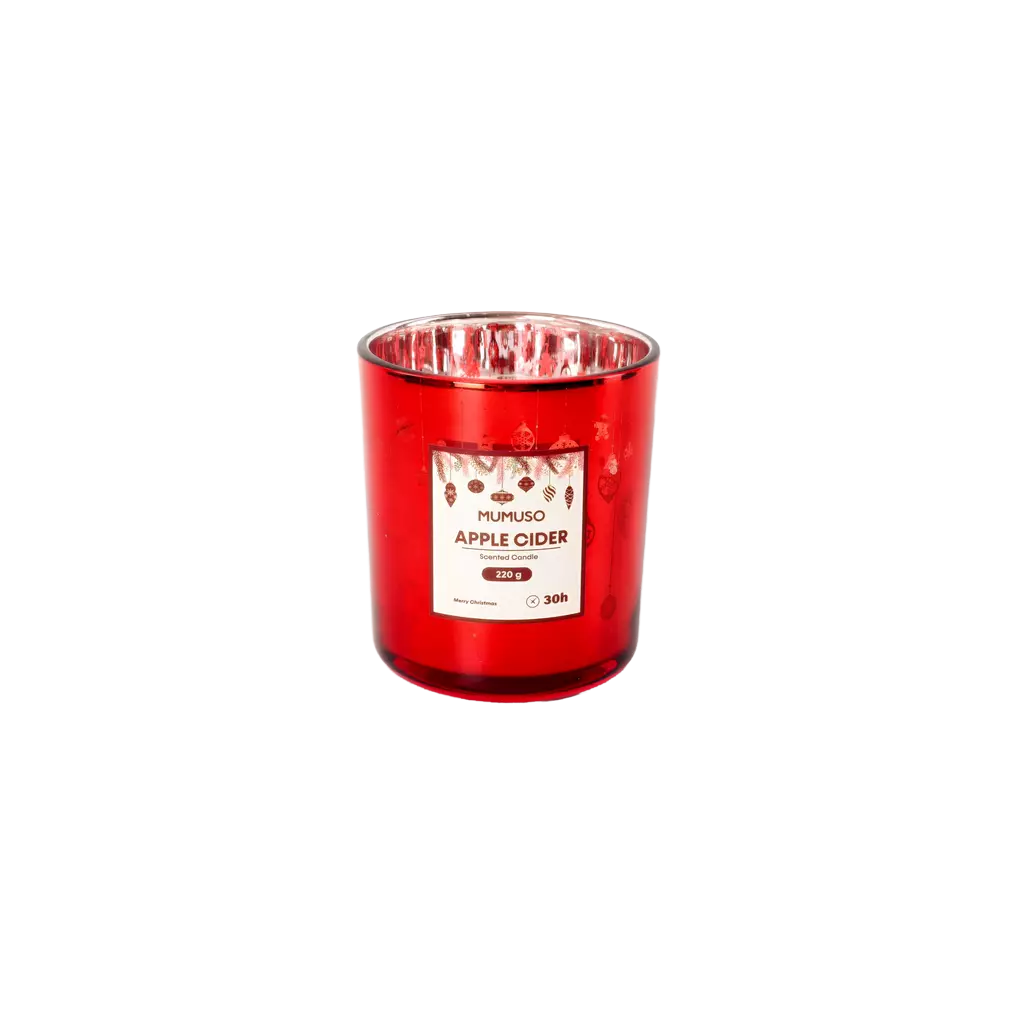 Die Kerze kommt in einem eleganten, roten Glasbehälter, der mit einem funkelnden Design verziert ist. Mit einem Gewicht von 220g sorgt sie für bis zu 30 Stunden brennende Freude.
