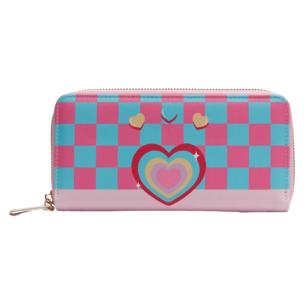 Gefertigt aus hochwertigem Kunstleder in kombiniertem Schachbrettmuster (Pink/Blau) mit fröhlichem Herz-Print überzeugt diese Geldbörse durch eine angenehme Haptik sowie trendiges Design. Die robuste Verarbeitung sorgt für Langlebigkeit und schützt den Inhalt zuverlässig.