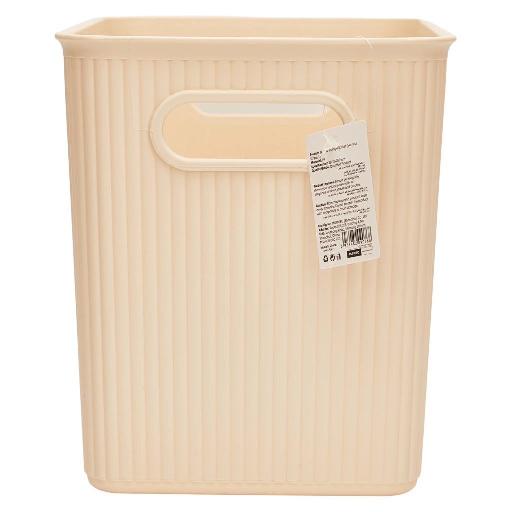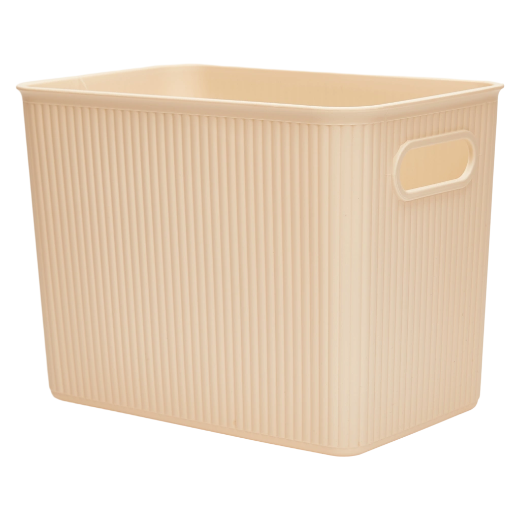 - Großer Aufbewahrungskorb aus Kunststoff mit vertikalem Streifen-Design (Creme)