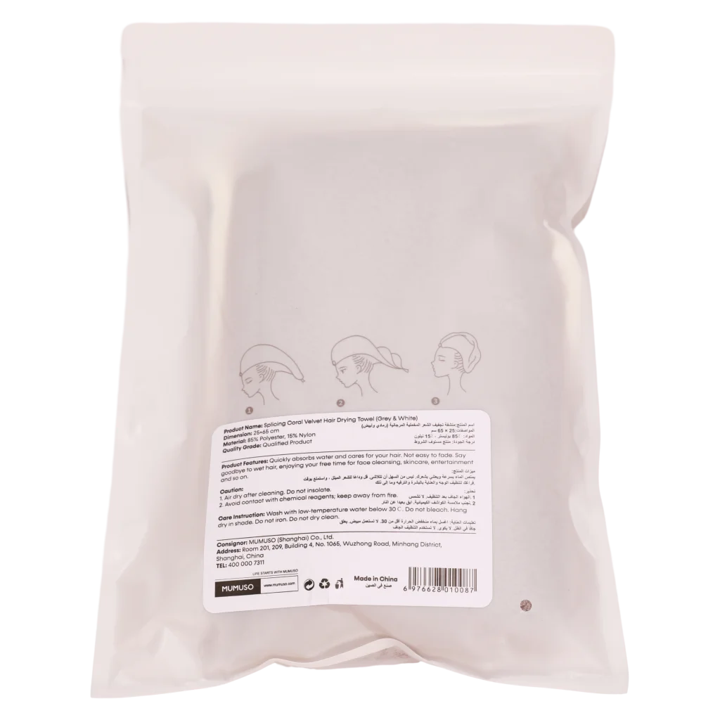 - Haar-Handtuch aus Coral Fleece, Mikrofaser, schnell trocknend (Grau/Weiß)