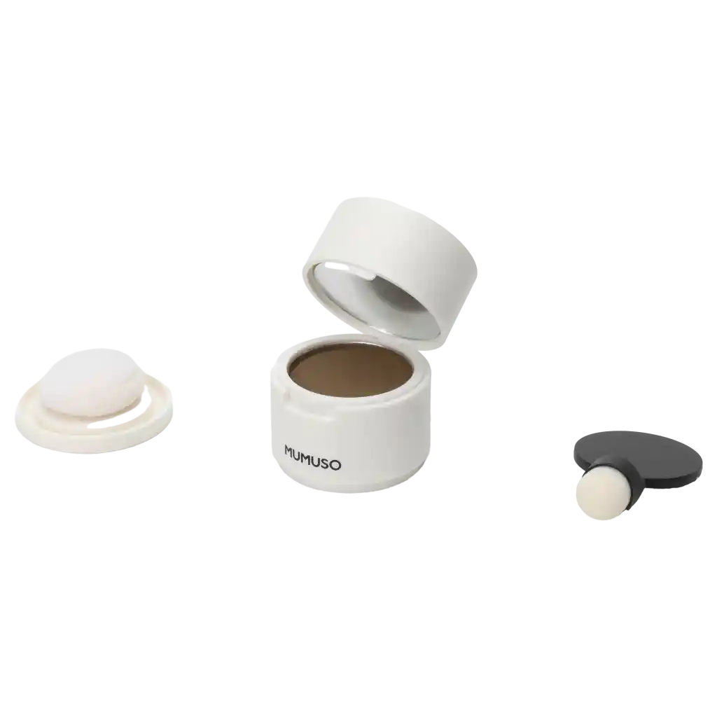 Das Haarpuder kommt in einer kompakten Dose mit integriertem Spiegel und Applikator, perfekt für die Hand- oder Sporttasche. Die Anwendung ist einfach: Puder mit dem beiliegenden Schwämmchen vorsichtig auf die gewünschten Stellen am Ansatz oder an den Schläfen auftupfen.