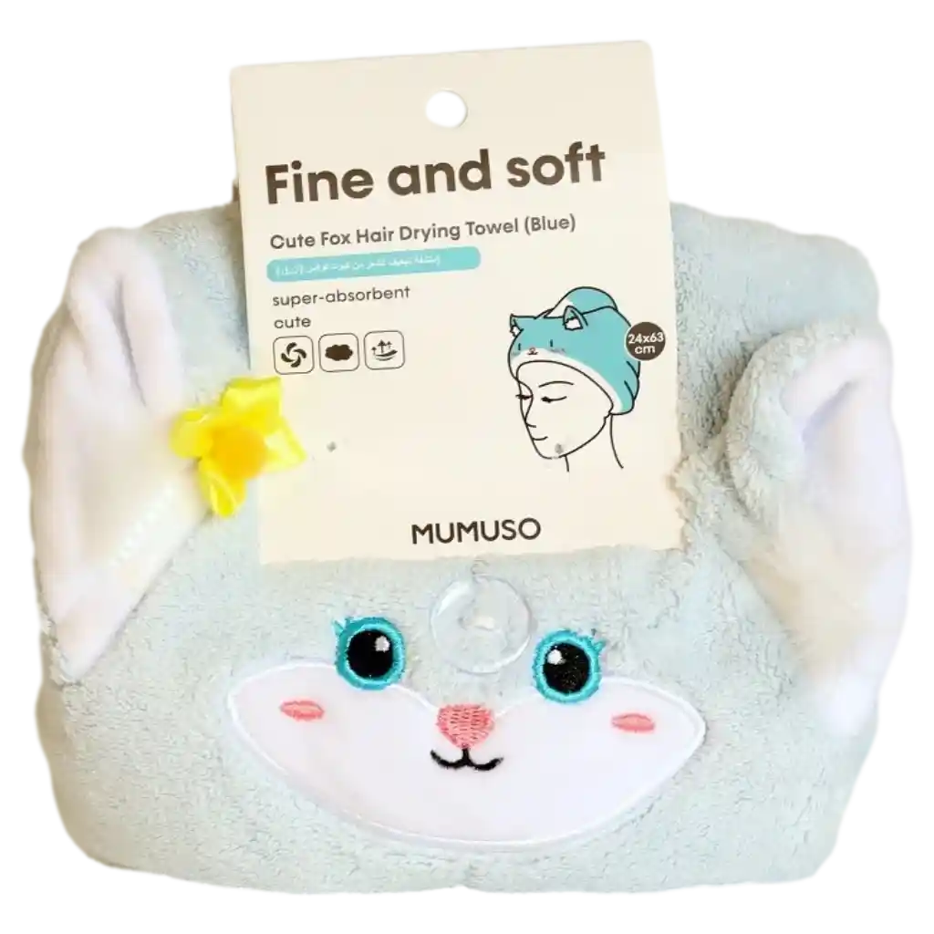 Dieses Haartrockentuch aus Korallenflockstoff ist besonders saugfähig und eignet sich ideal zum schnellen Trocknen der Haare. Das niedliche Fuchs-Design (Blau) macht es sowohl für Kinder als auch für Erwachsene attraktiv. Zwei Short-Tail-Keywords: Haarturban, Haartrockentuch.
