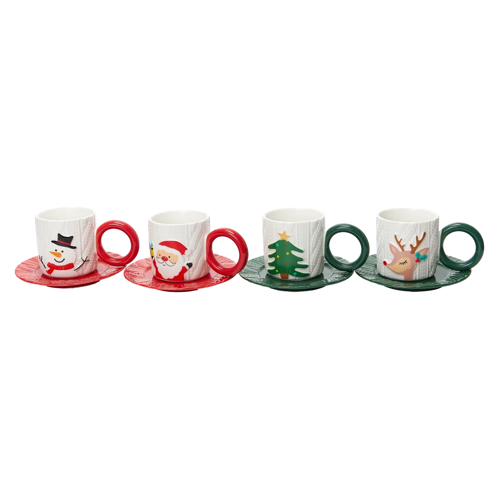 Jede Tasse ist detailreich handbemalt und präsentiert sich mit typischen Weihnachts-Designs wie Schneemann, Rentier, Weihnachtsbaum oder Weihnachtsmann (Rot/Grün/Weiß). Hergestellt aus stabiler Keramik liegt sie angenehm in der Hand und überzeugt durch Langlebigkeit im täglichen Gebrauch.