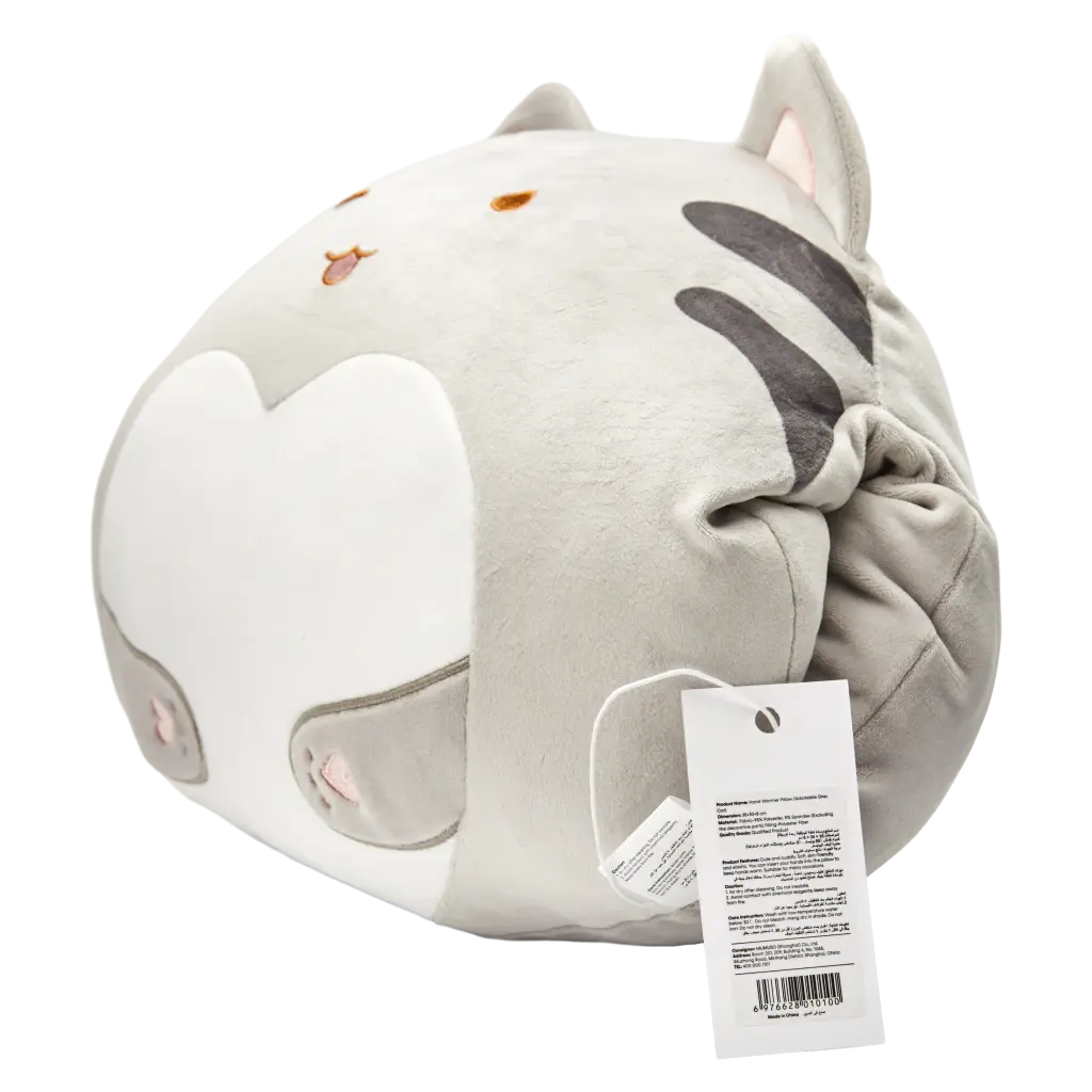 Das Kissen präsentiert sich im niedlichen Katzen-Design in den Farben Hellgrau/Weiß mit zarten Details und besticktem Gesicht. Die Oberfläche ist besonders weich und anschmiegsam, während die wattierte Füllung für ein angenehmes Volumen sorgt. Dank hochwertiger Verarbeitung bleibt das Kissen formstabil und langlebig.