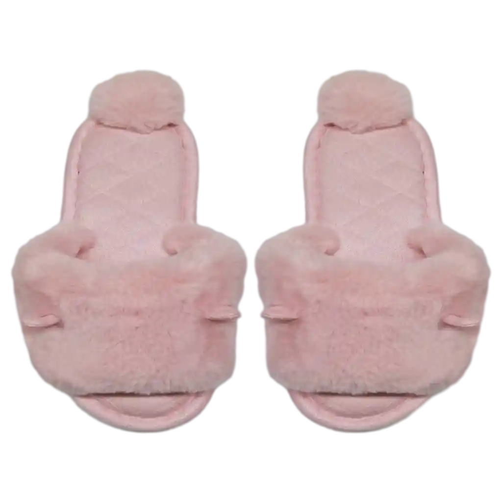 - Hausschuhe Damen Plüsch offen mit Kaninchenohren-Design (Rosa, Größe 39-40)