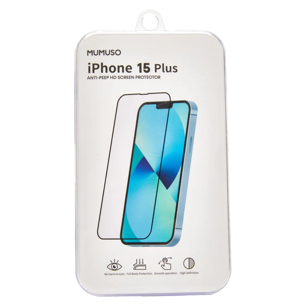 - HD Displayschutzfolie aus Glas für iPhone 15 Plus, Anti-Peep (Transparent)