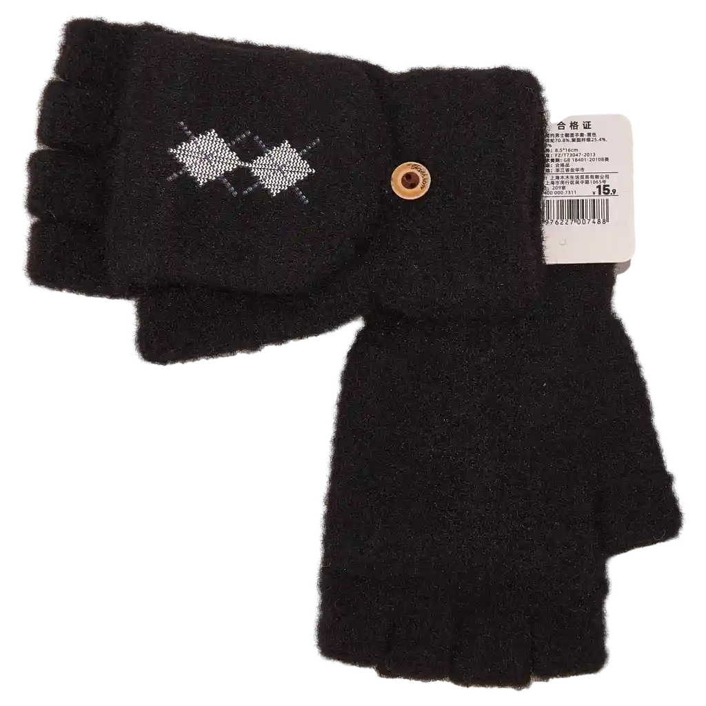 - Herren Klapphandschuhe Strick mit Rauten-Print (Schwarz)