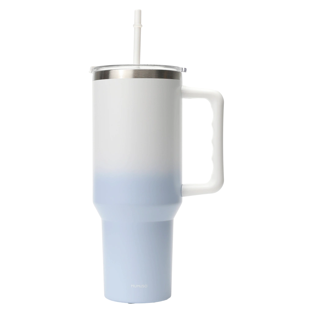 - Isolierbecher aus Edelstahl mit Henkel und Strohhalm, 1200 ml, Kollektion Kirschblüte (Blau)