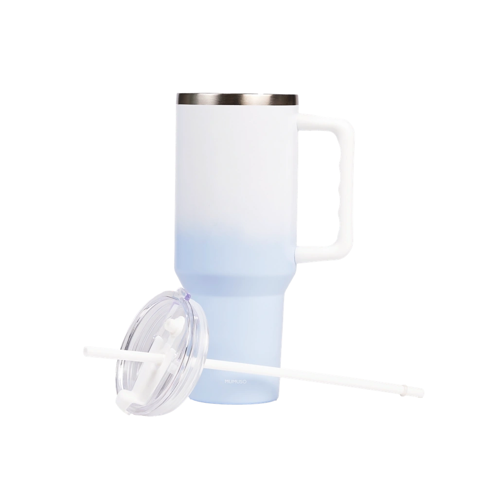 Der doppelwandige Isolierbecher aus Edelstahl mit Henkel und Strohhalm eignet sich ideal für unterwegs. Das Fassungsvermögen von 1200 ml ermöglicht den Genuss von Heiß- und Kaltgetränken, während die hochwertige Verarbeitung für lange Temperaturhaltung sorgt.