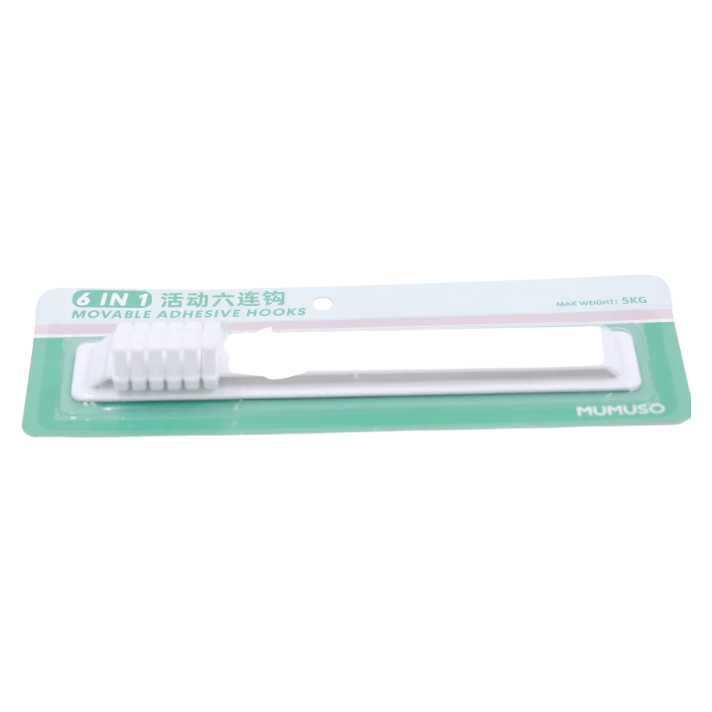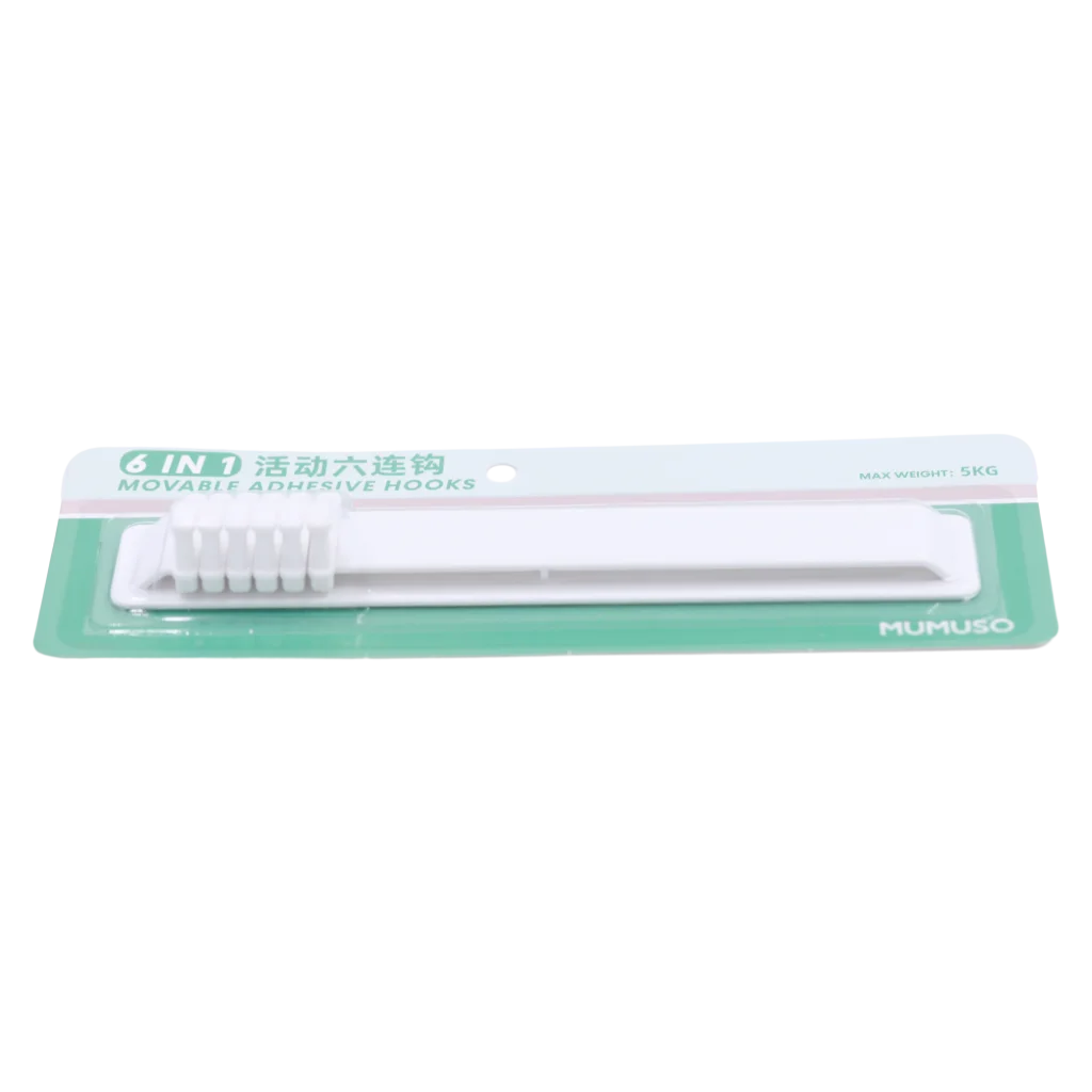Das selbstklebende Hakenpanel aus ABS bietet sechs bewegliche Aufhängepunkte für Küche, Bad oder Flur. Die Klebehaken sind ideal für glatte Oberflächen und ermöglichen schnelle, flexible Organisation ohne Bohren.