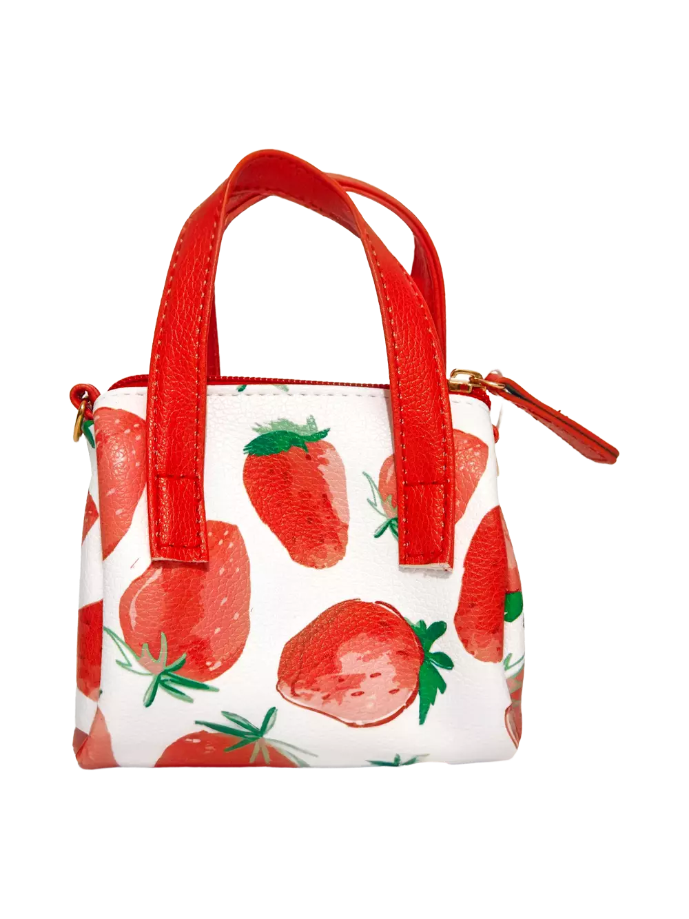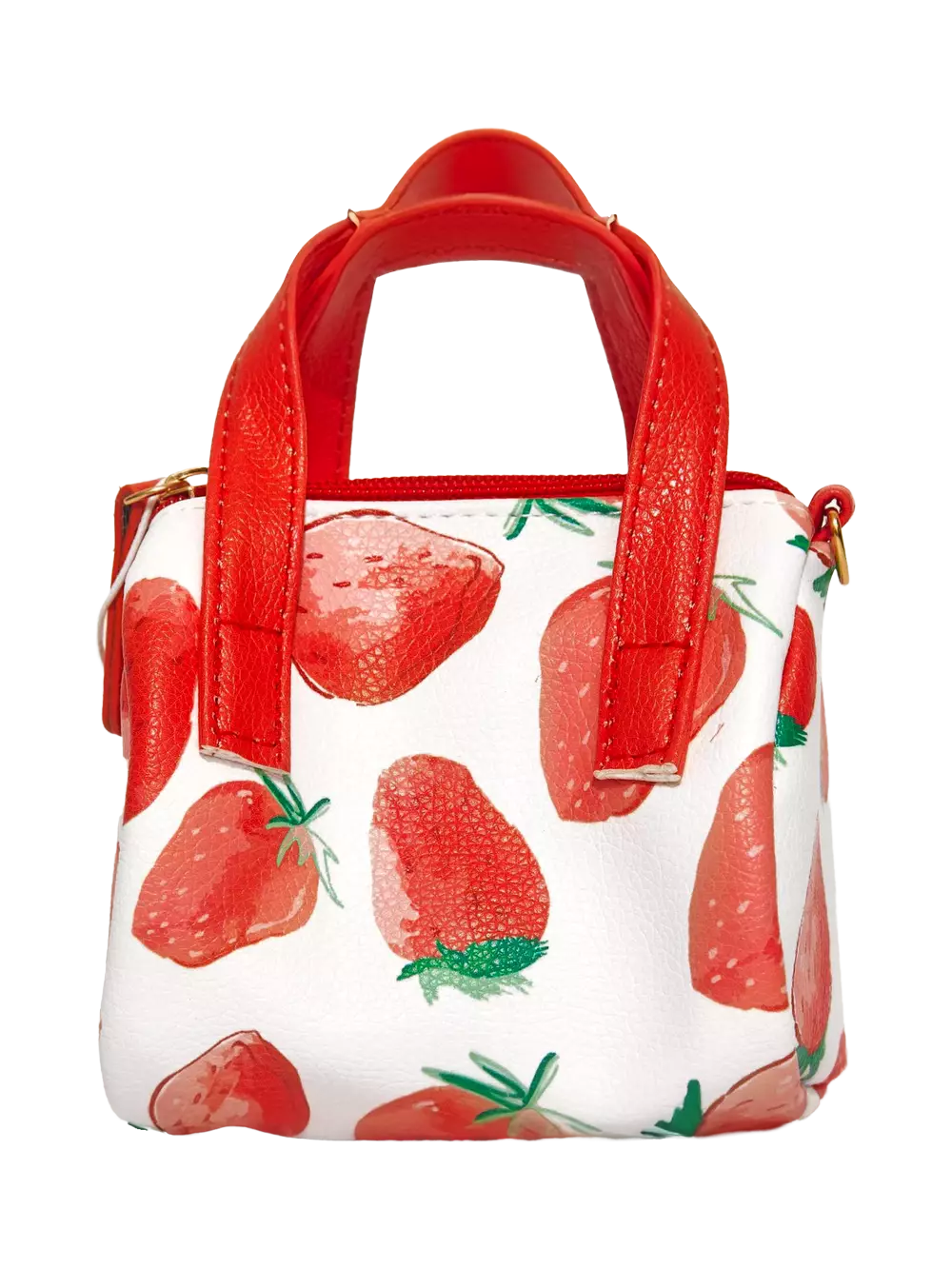 - Kleine Handtasche aus Kunstleder mit Erdbeer-Print (Weiß/Rot)
