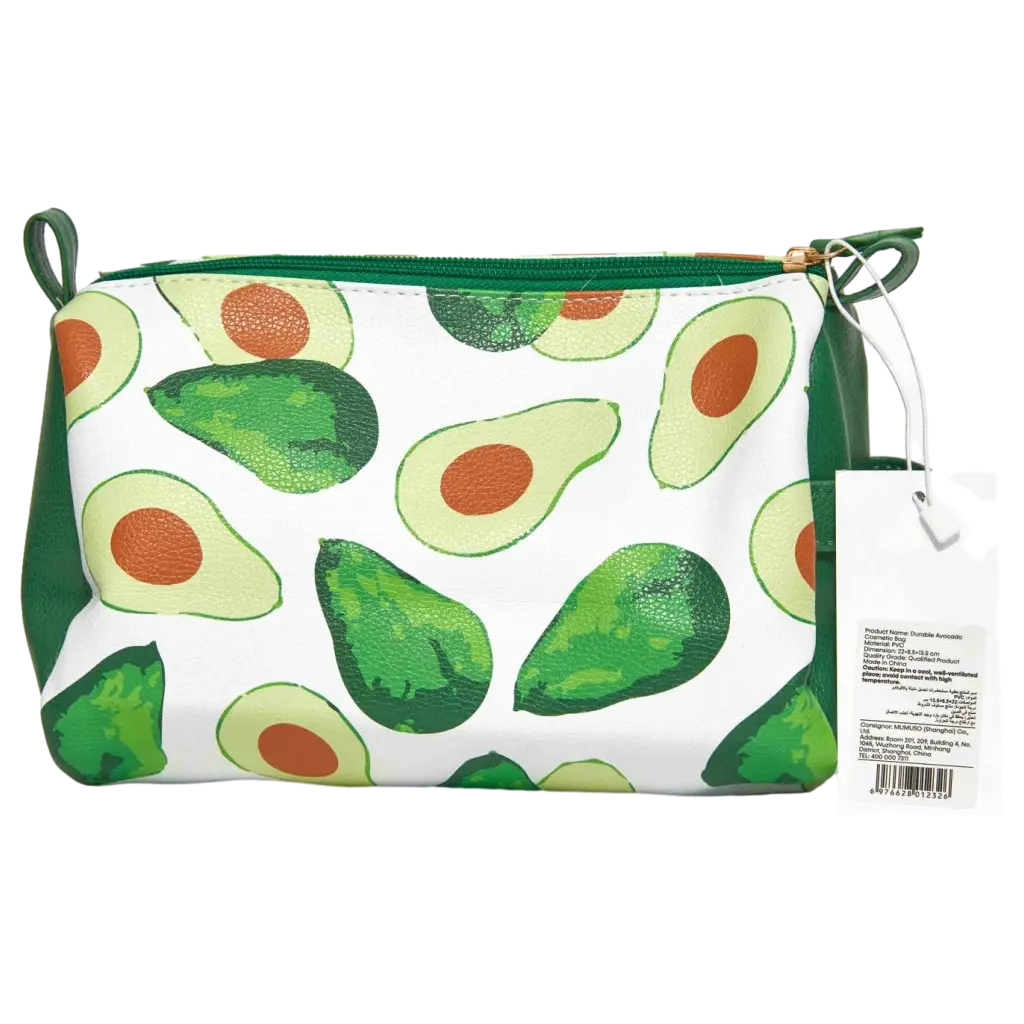 Die Kosmetiktasche mit Avocado-Print bietet ausreichend Platz für Make-up, Pflegeprodukte oder persönliche Kleinigkeiten. Sie eignet sich besonders für den Alltag, fürs Büro oder auf Reisen.
