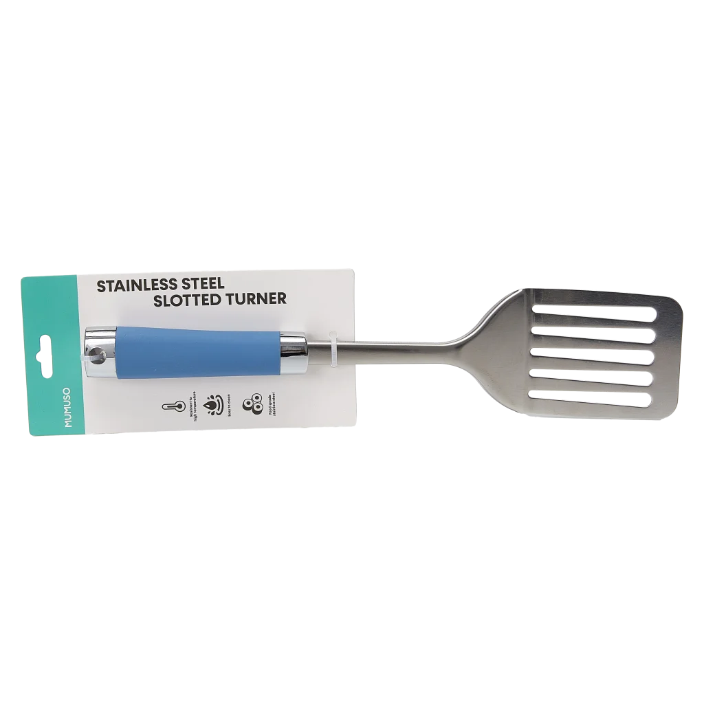 - Küchenwender aus Edelstahl mit Schlitzkopf und Kunststoffgriff (Blau)