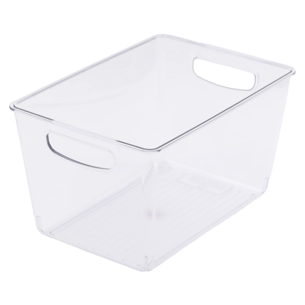 Die Box besteht aus robustem PET-Kunststoff und ist transparent, sodass der Inhalt jederzeit leicht erkennbar ist. Seitliche Grifföffnungen ermöglichen einen schnellen Zugriff, das schlichte Design passt sich jeder Küche an. Die Herstellung aus Kunststoff macht sie besonders leicht und pflegeleicht.