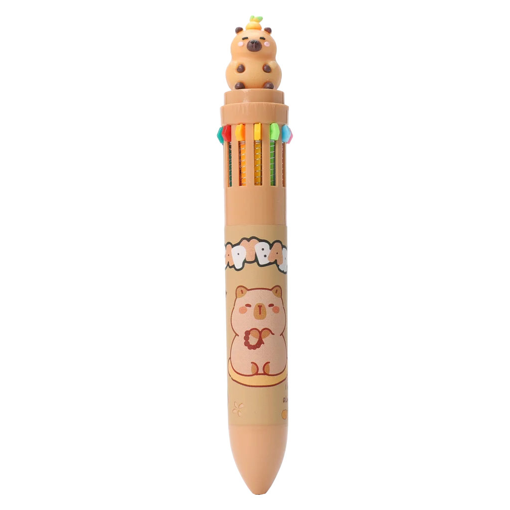 - Kugelschreiber mit 12 Farben und Capybara-Design, Retraktmechanismus (Mehrfarbig)