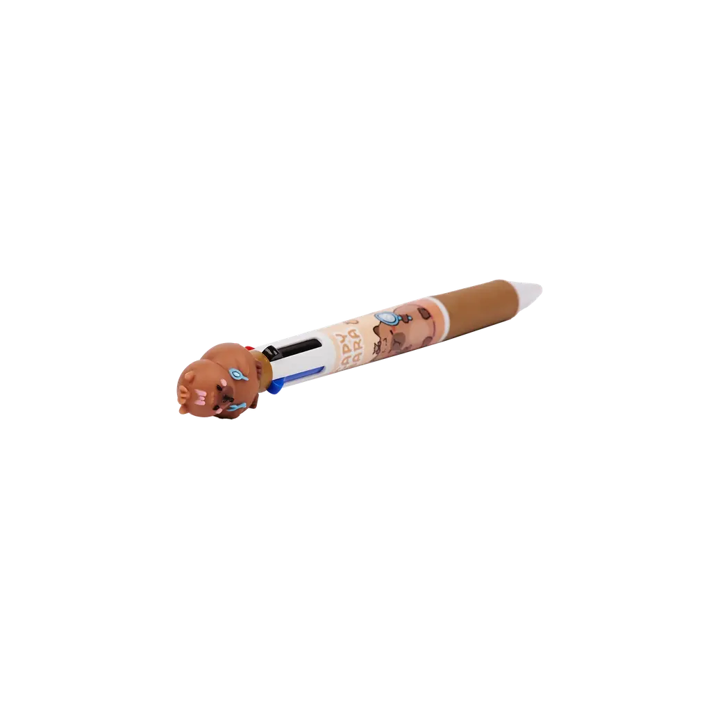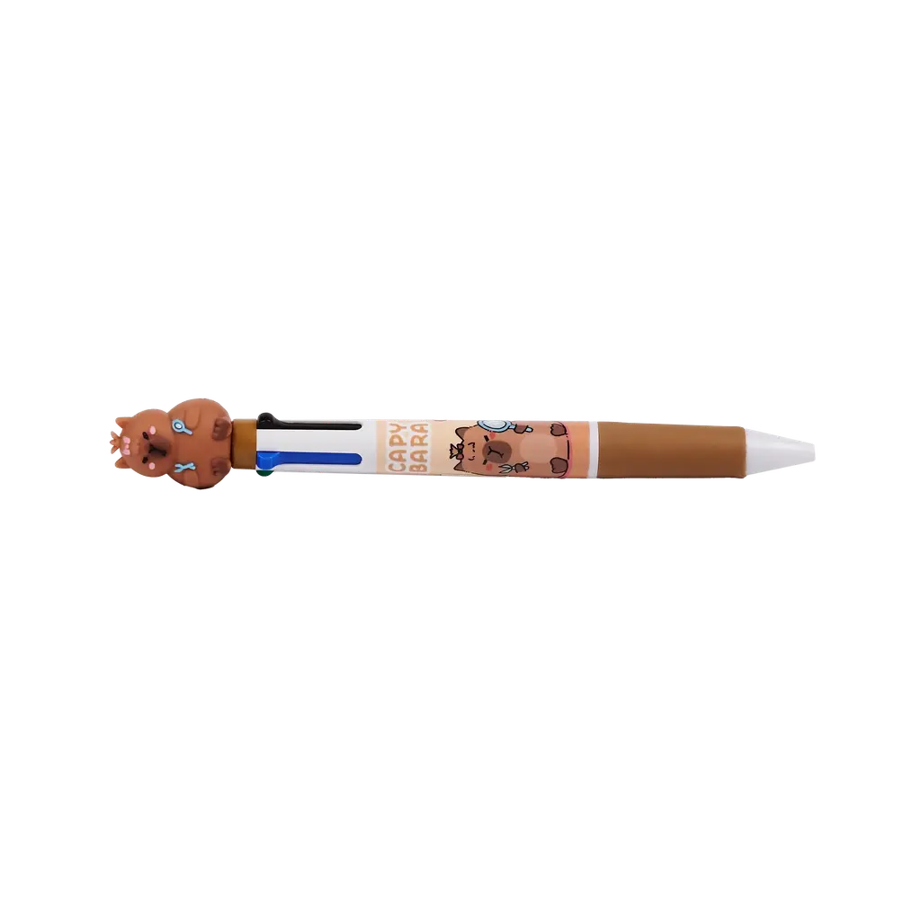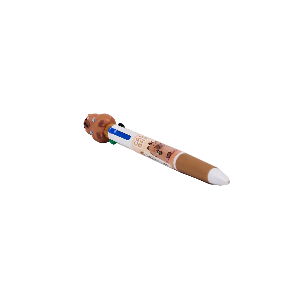 Kugelschreiber mit 4 Farben und Capybara-Design (Braun/Weiß/Bunt)