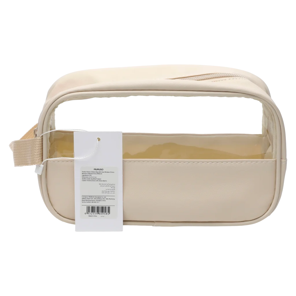 Gefertigt aus strapazierfähigem PVC, überzeugt die Tasche mit einem modernen, klaren Design und einem transparenten Fenster auf der Vorderseite. Die dezente Farbe Ivory White passt zu jedem Stil. Durch das kompakte Format findet der Kulturbeutel Platz in Handgepäck oder Reisetasche.
