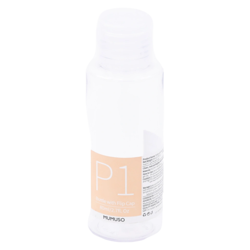 Gefertigt aus klarem, robustem Kunststoff und mit einem handlichen Fassungsvermögen von 80 ml ausgestattet, überzeugt die Flasche durch ihren Flip-Top-Verschluss für einfaches Öffnen und Schließen. Das neutrale, schlichte Design passt in jedes Badezimmer und jede Tasche.