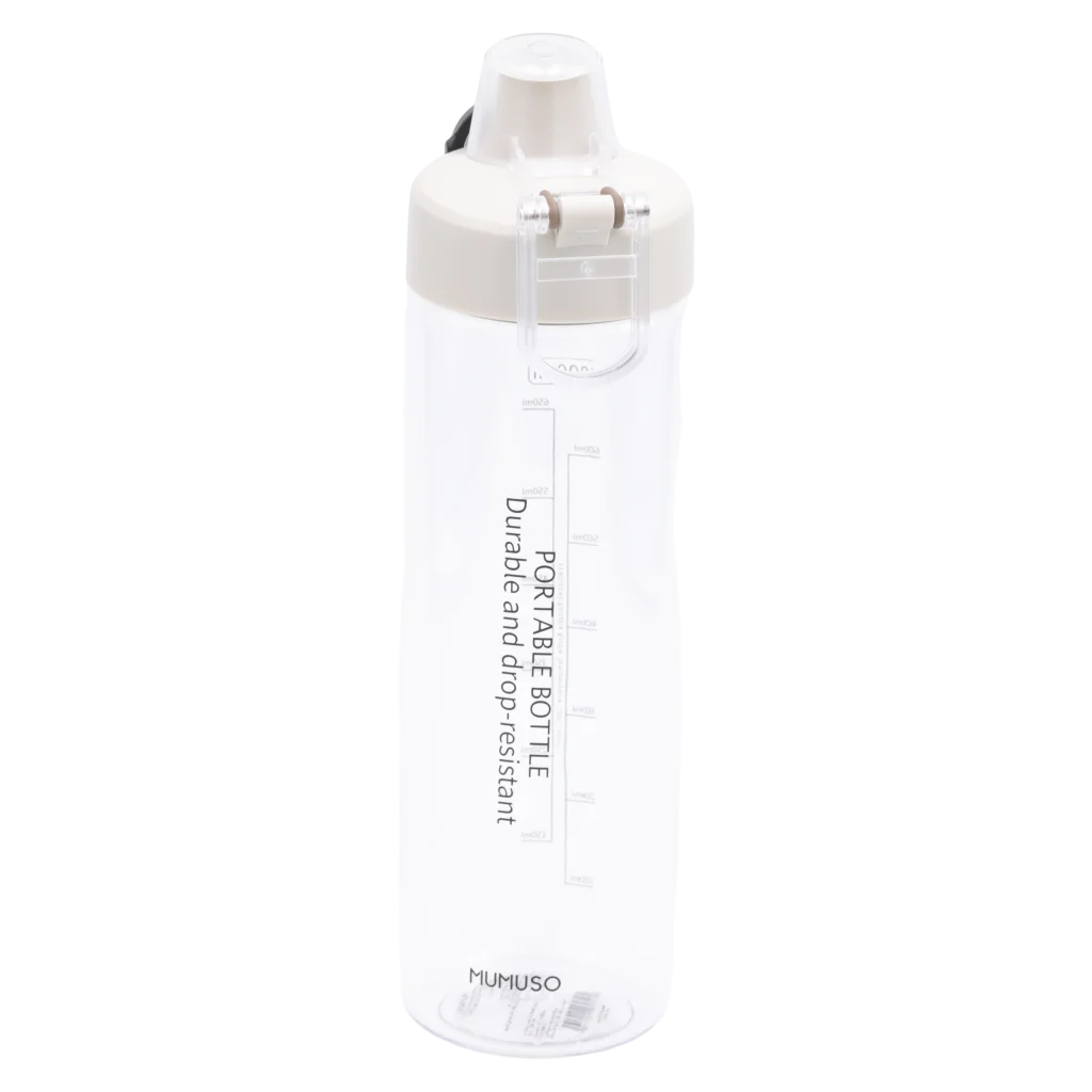 Die Flasche überzeugt durch modernes Design in Grau und besteht aus langlebigem, pflegeleichtem Kunststoff (PP, PC). Der praktische Flip-Deckel und die Messskala machen die Nutzung besonders komfortabel.