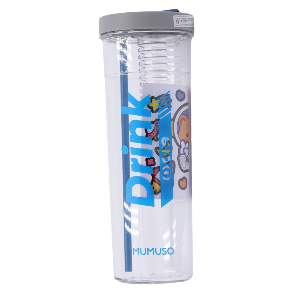 Kunststoff-Wasserflasche mit faltbarem Strohhalm und Infuser, 700 ml (Blau)