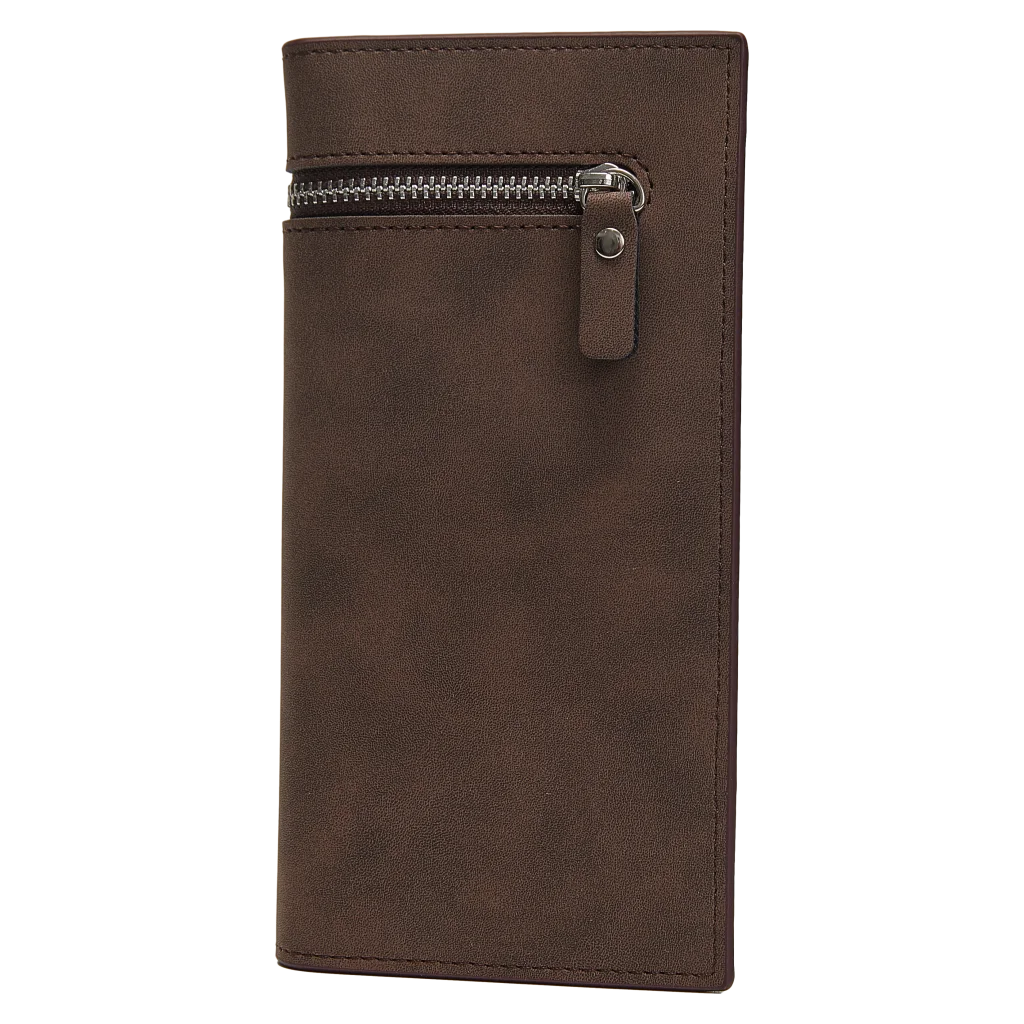 Lange Kunstleder-Geldbörse für Herren mit Reißverschluss (Braun)
