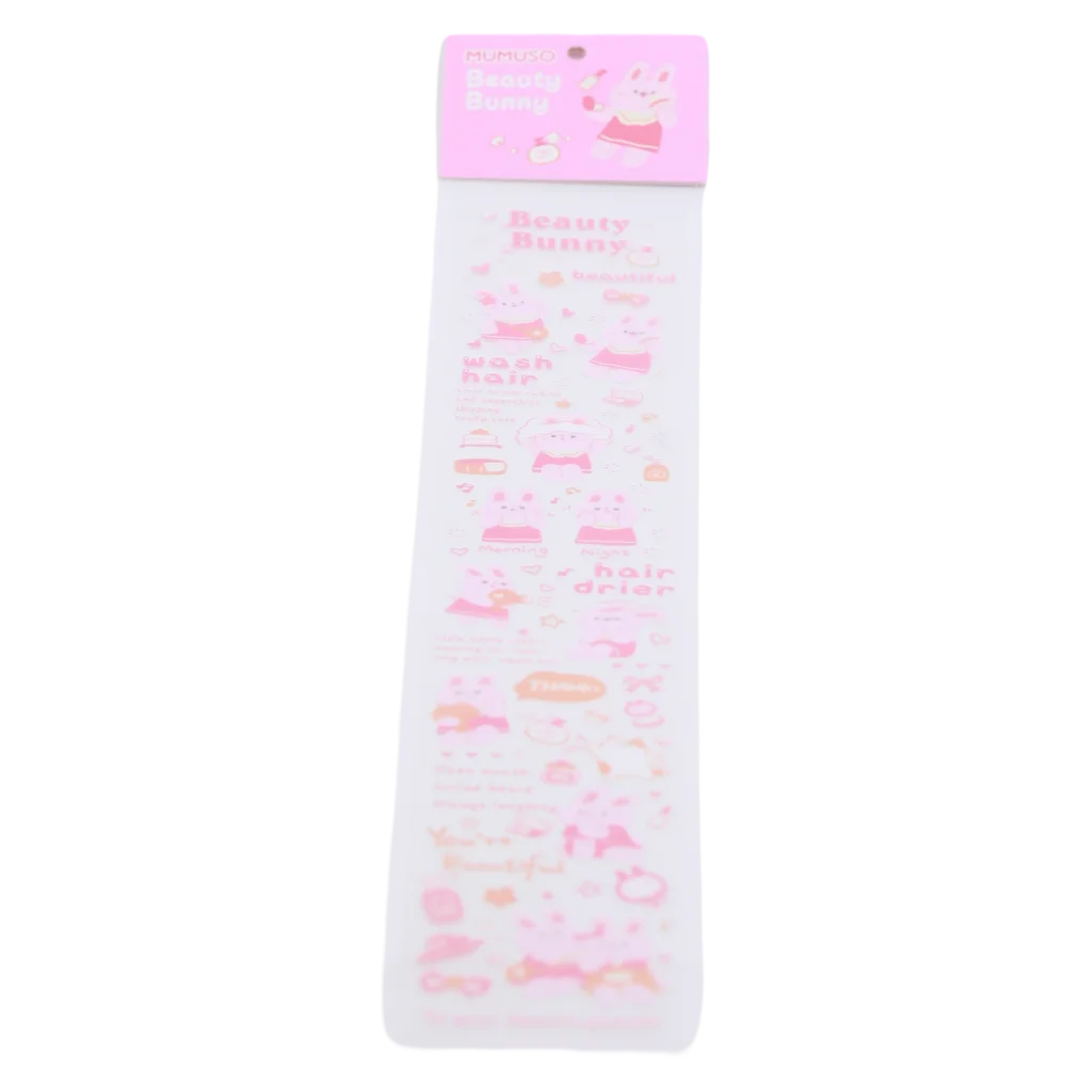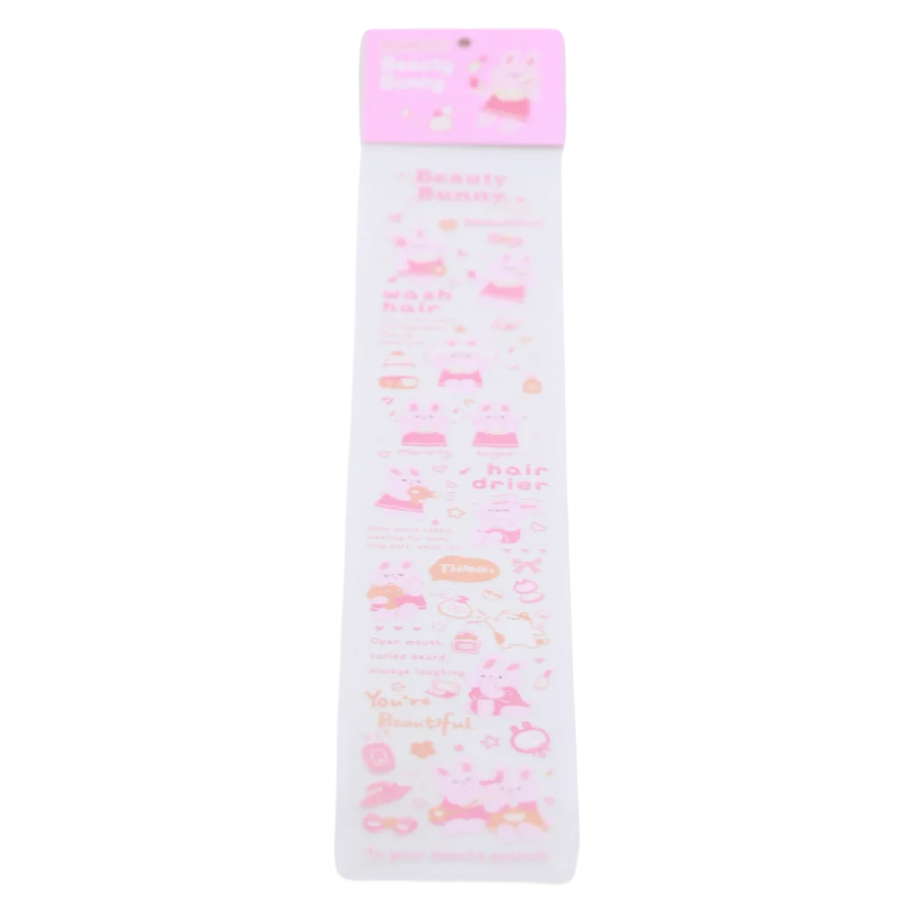 Das Tape zeigt ein niedliches Hasen-Print in Rosa- und Pastelltönen und überzeugt durch sein liebevoll gestaltetes Design. Die feine Oberflächenstruktur sorgt für angenehmes Anbringen und einfaches Abziehen, ohne Rückstände zu hinterlassen.