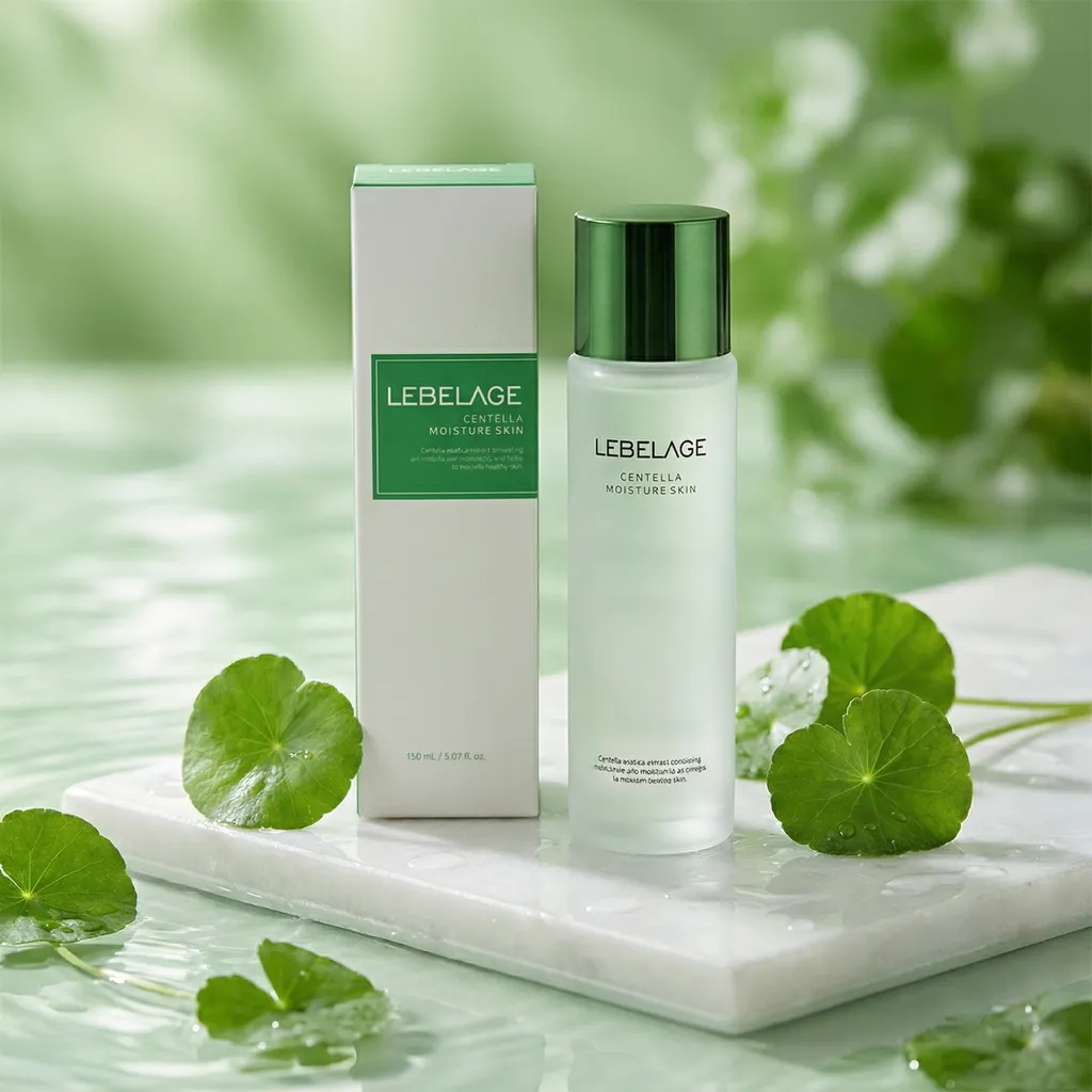 LEBELAGE CENTELLA MOISTURE SKIN ist ein feuchtigkeitsspendendes Gesichtswasser, das speziell für trockene und empfindliche Haut entwickelt wurde. Es beruhigt und hydratisiert die Haut, während es gleichzeitig die Hautbarriere stärkt.