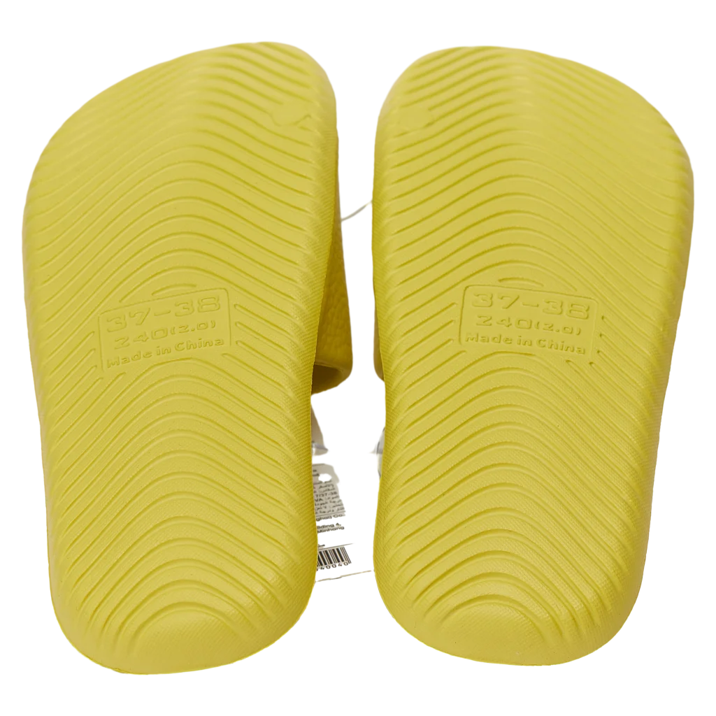 Gefertigt aus flexiblem EVA, überzeugen die Slipper durch ihr geringes Gewicht und eine weiche Haptik. Die moderne Ausführung in Senfgelb sorgt für eine frische, freundliche Optik, die sich leicht mit verschiedenen Kleidungsstilen kombinieren lässt.