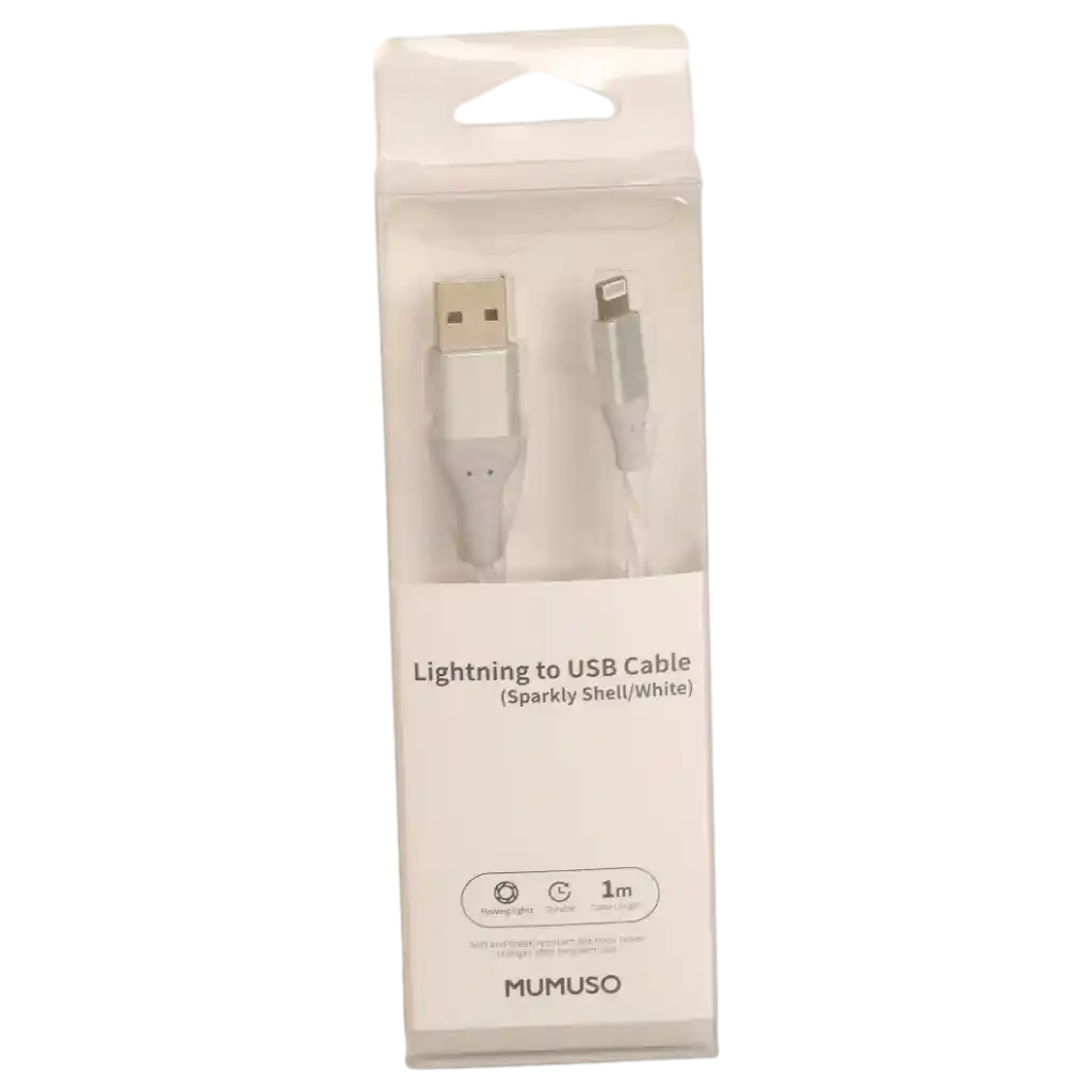 - Lightning-auf-USB-Ladekabel aus TPE/PVC, 1 m (Weiß) mit schimmerndem Stecker-Design