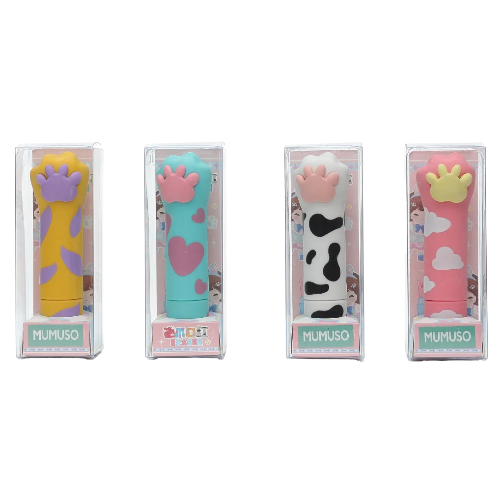 - Lippenstift-Radierer mit Katzenpfoten-Design (Gelb/Türkis/Weiß/Rosa)