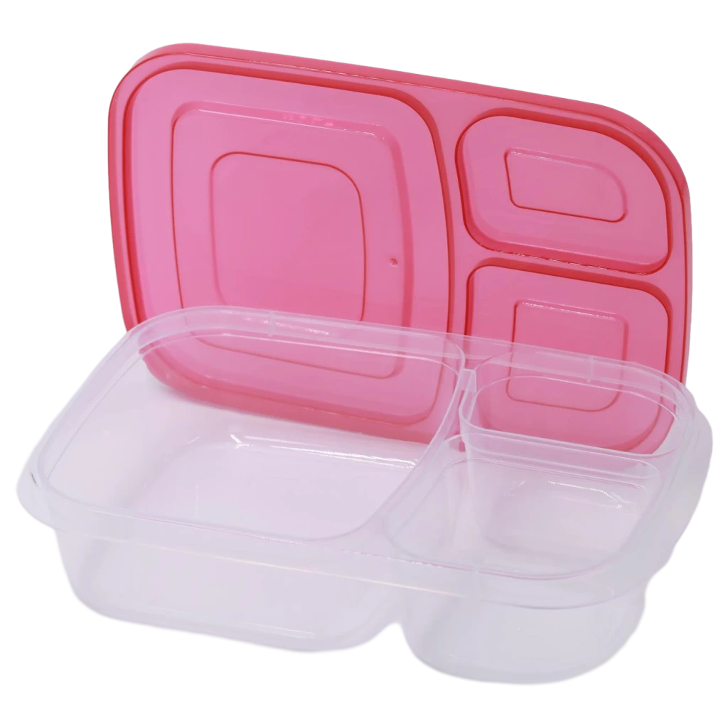 Lunchbox aus PP mit 3 Fächern, Kunststoff-Aufbewahrungsbox (Gelb/Grün/Rosa/Blau/Orange)