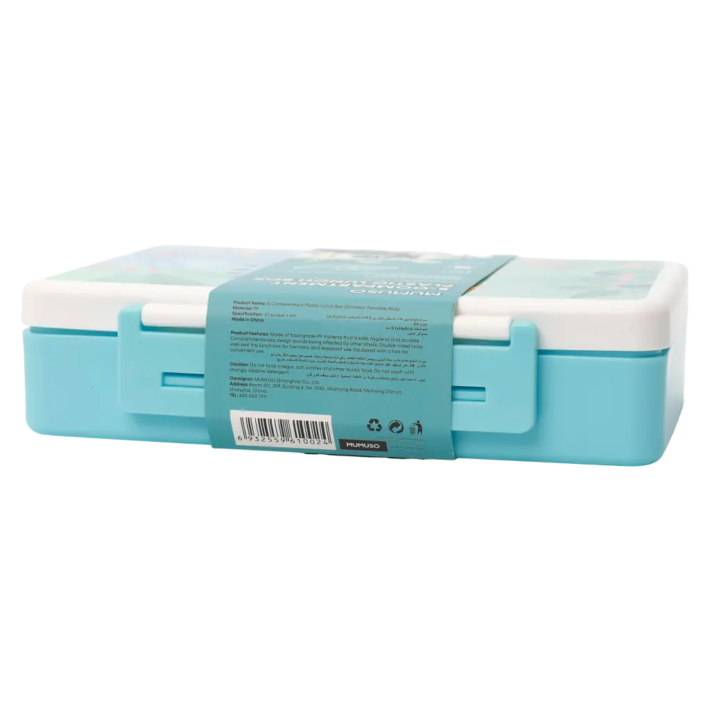 Die Lunchbox mit fünf Fächern aus robustem PP ist ideal für Kinder und Erwachsene. Das Dinosaurier-Design (Blau) sorgt für Freude bei jeder Mahlzeit. Praktisch zur sicheren Aufbewahrung verschiedener Lebensmittel.